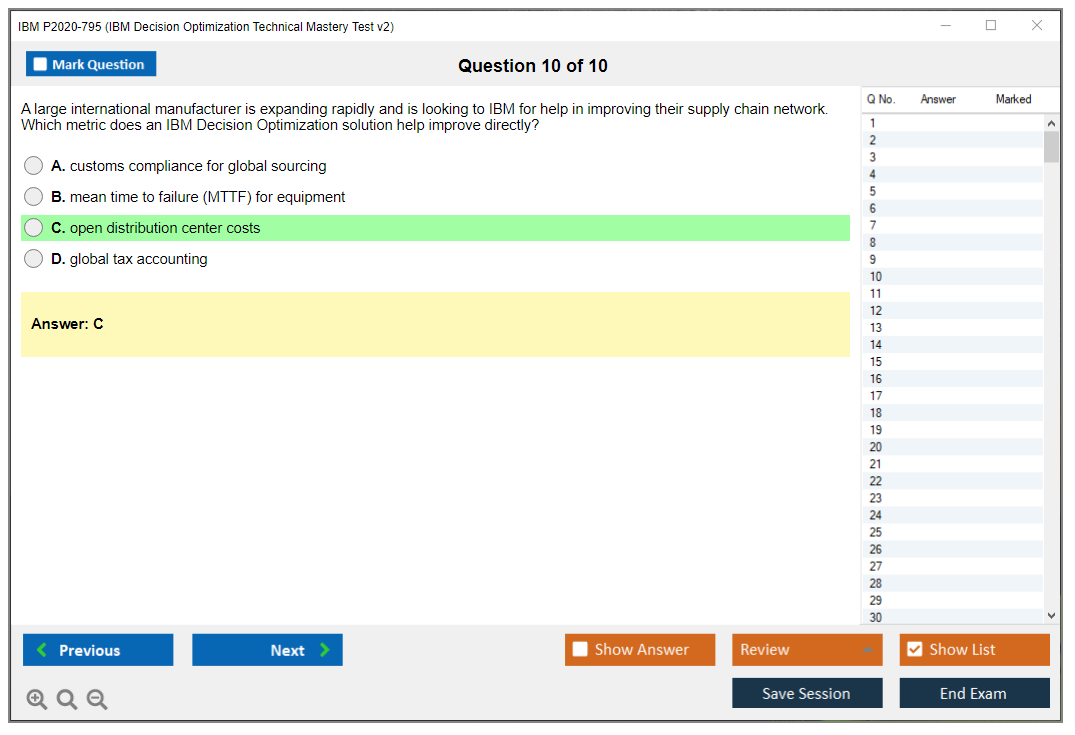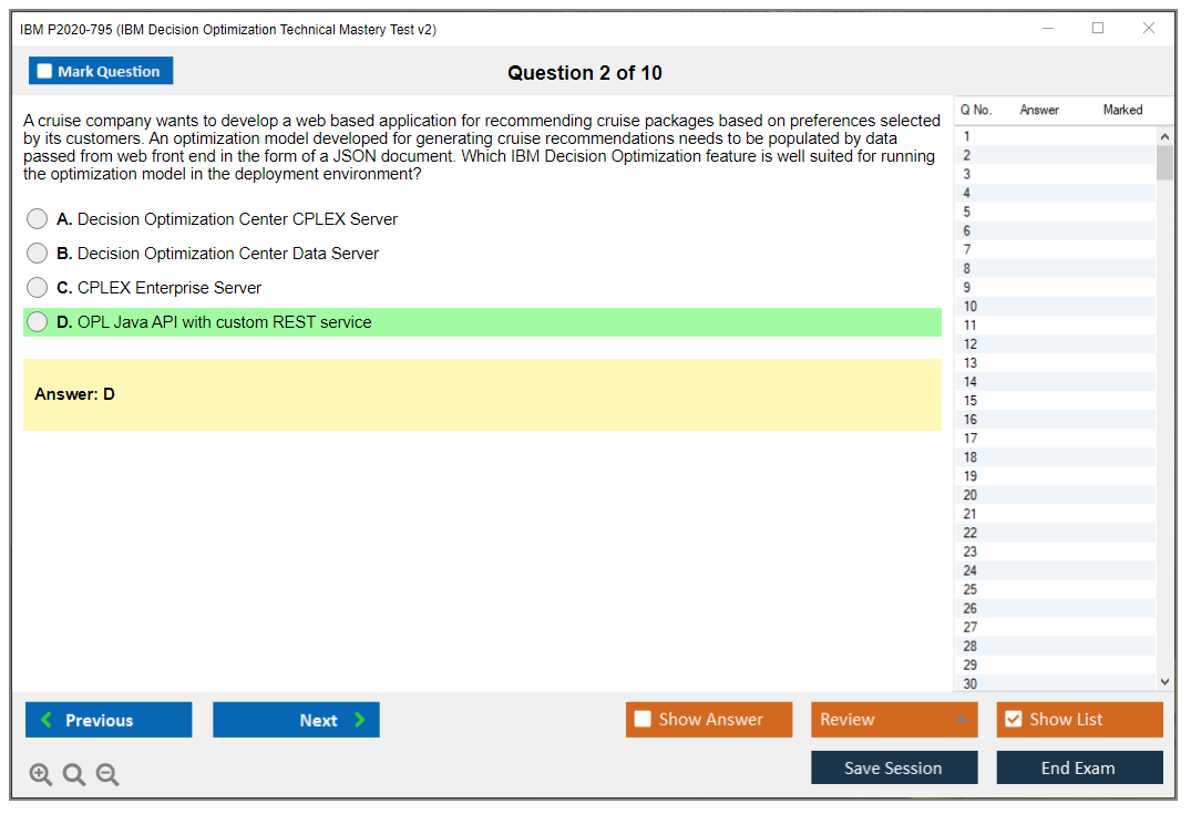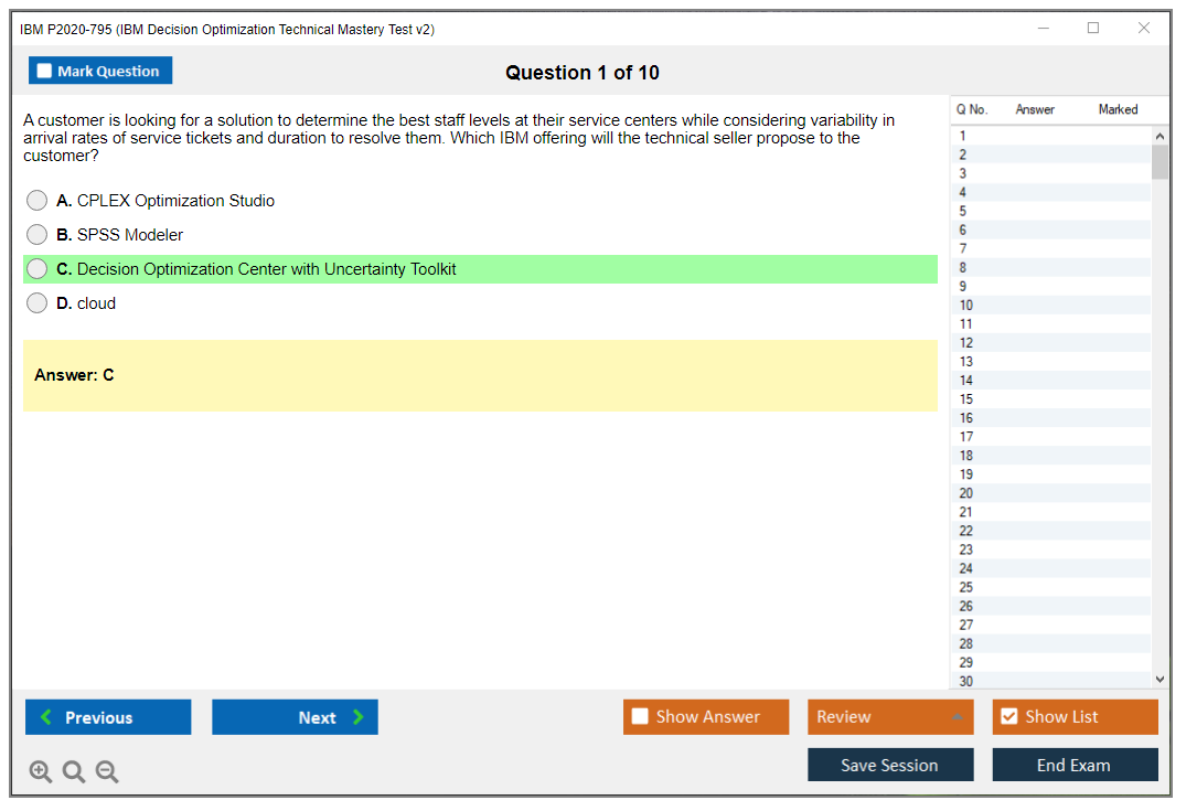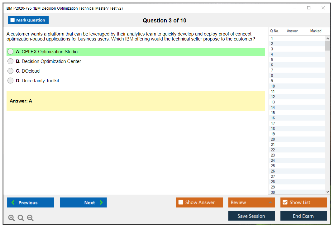 Note: IBM P2020-795 (IBM Decision Optimization Technical Mastery Test v2) will not receive any new updates.