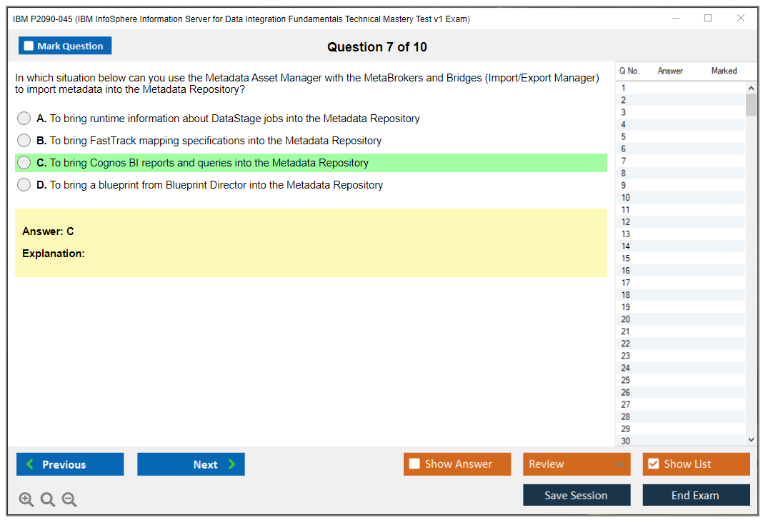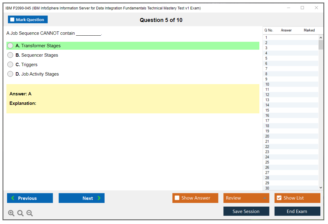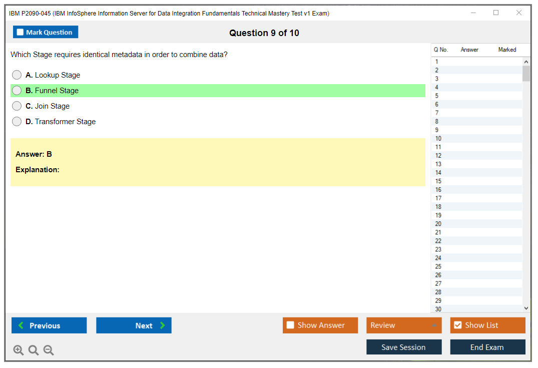 Note: IBM P2090-045 (IBM InfoSphere Information Server for Data Integration Fundamentals Technical Mastery Test v1 Exam) will not receive any new updates.