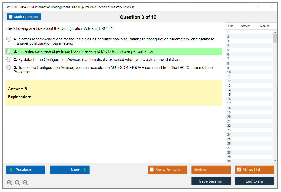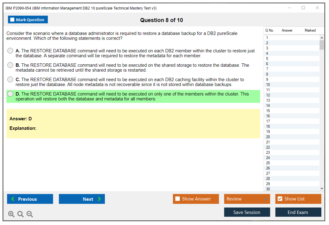 The IBM P2090-054 (IBM Information Management DB2 10 pureScale Technical Mastery Test v3) Exam is designed to validate the skills and knowledge of individuals in managing and implementing IBM DB2 10 pureScale environments. This exam tests the candidate's ability to understand and utilize the features and functionalities of IBM DB2 10 pureScale.