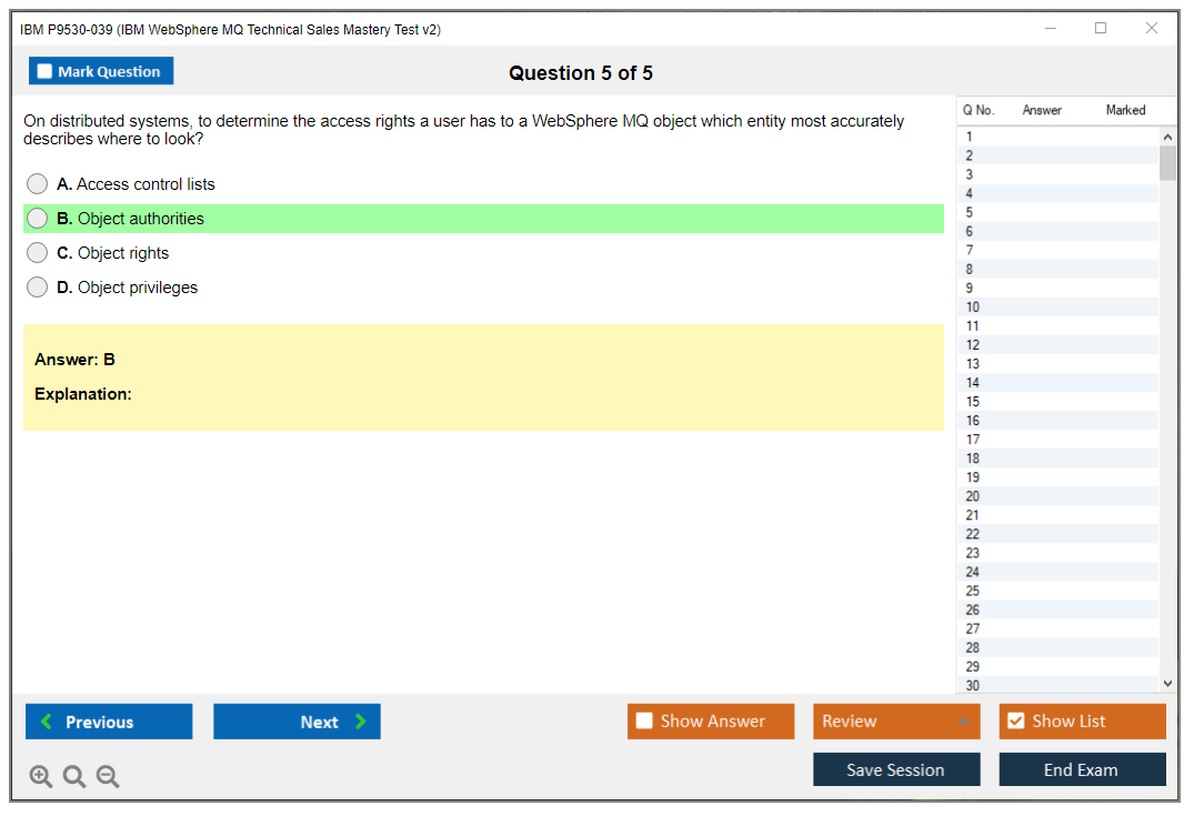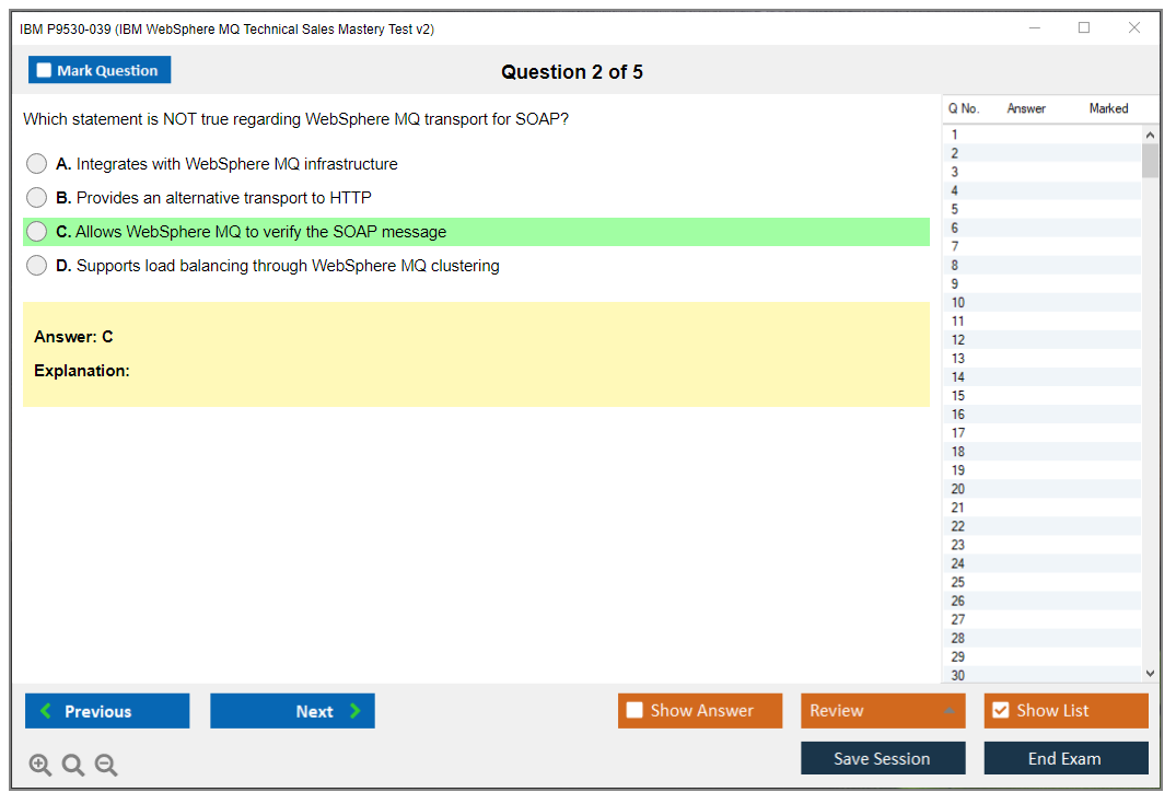 Note: IBM P9530-039 (IBM WebSphere MQ Technical Sales Mastery Test v2) will not receive any new updates.