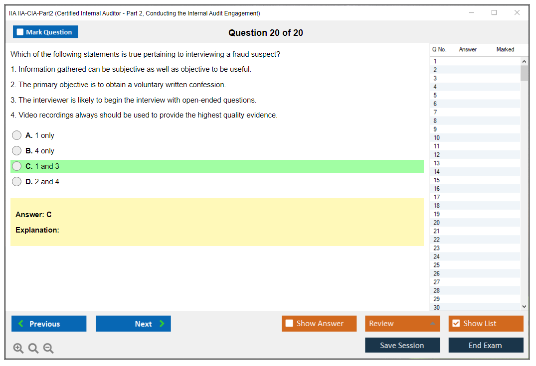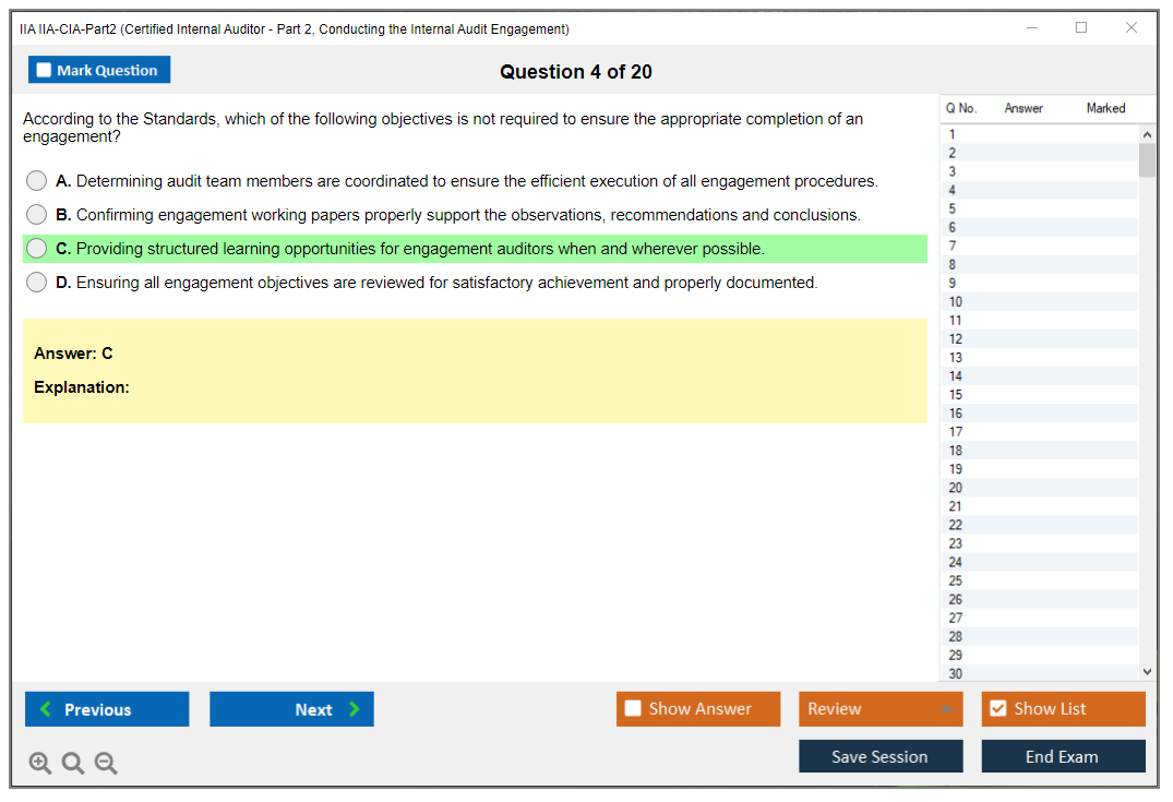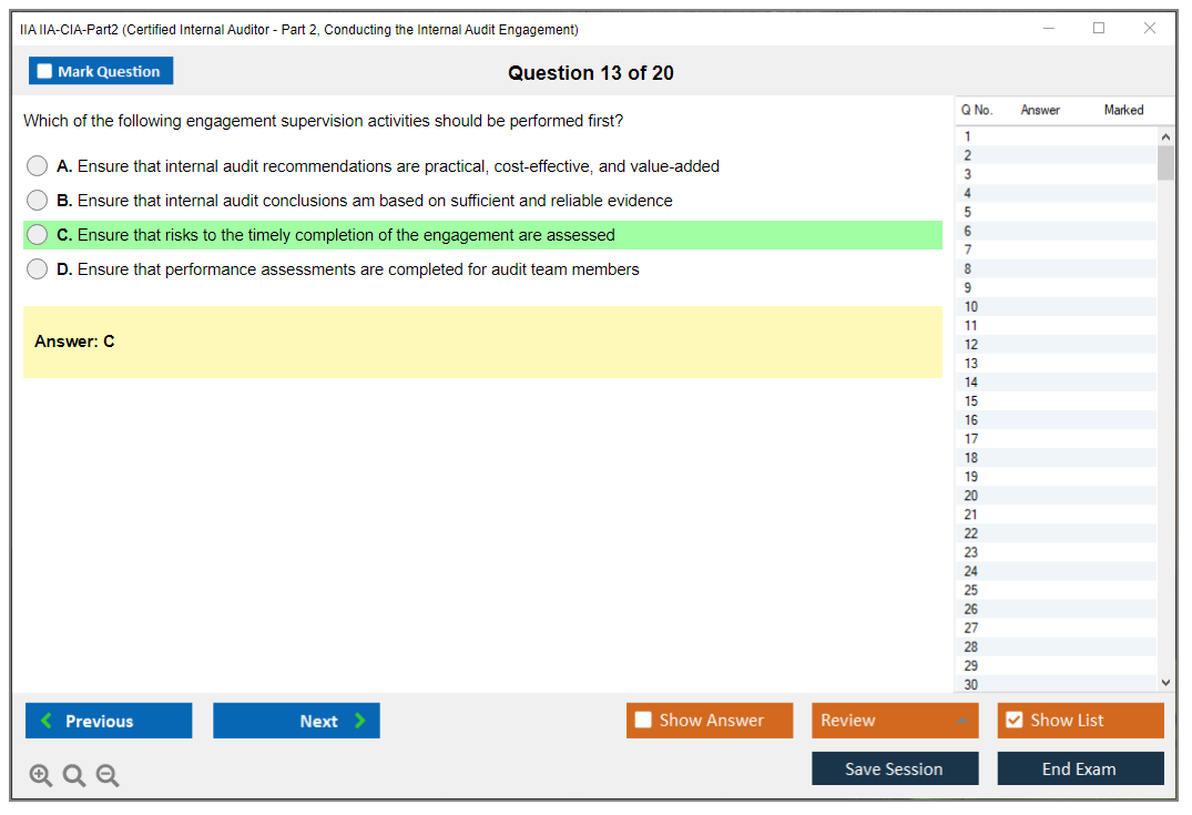 The IIA IIA-CIA-Part2 (Practice of Internal Auditing) exam is designed to test a candidate's knowledge and skills in conducting internal audits. It focuses on internal audit functions, including managing the internal audit activity, planning the engagement, performing the engagement, and communicating engagement results.