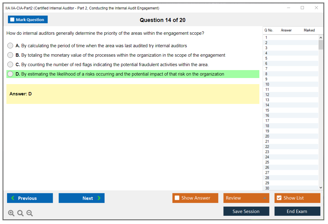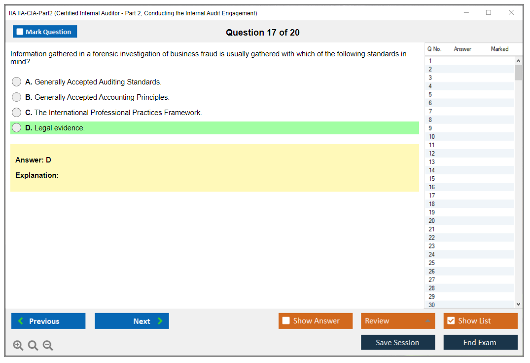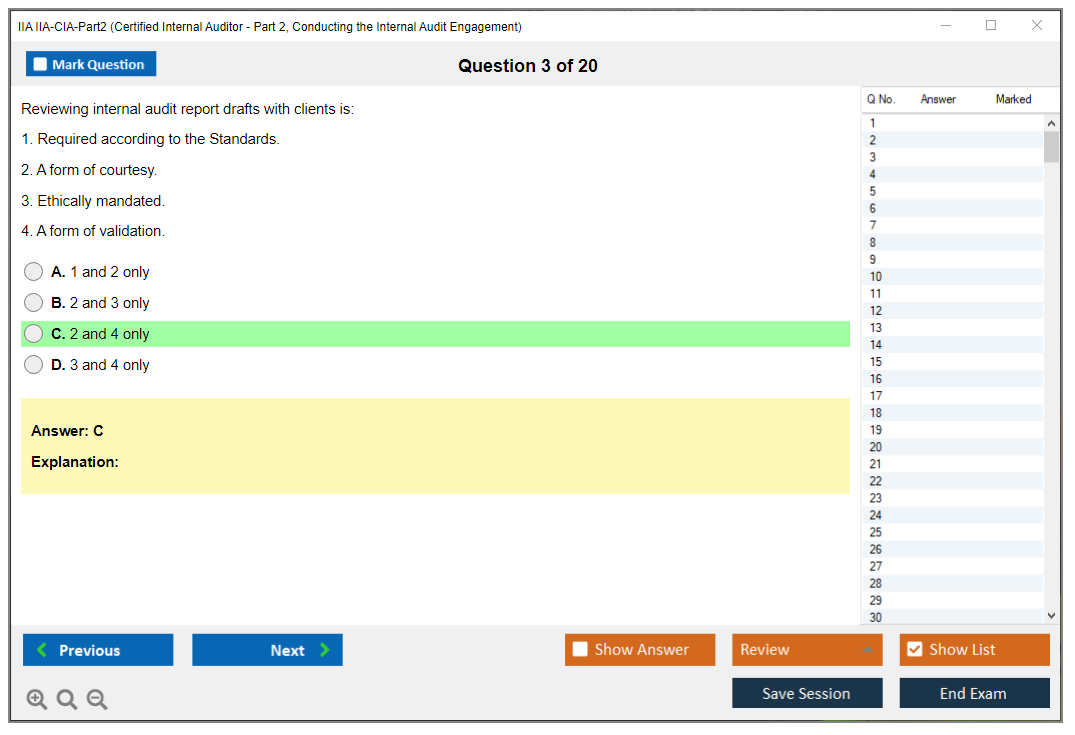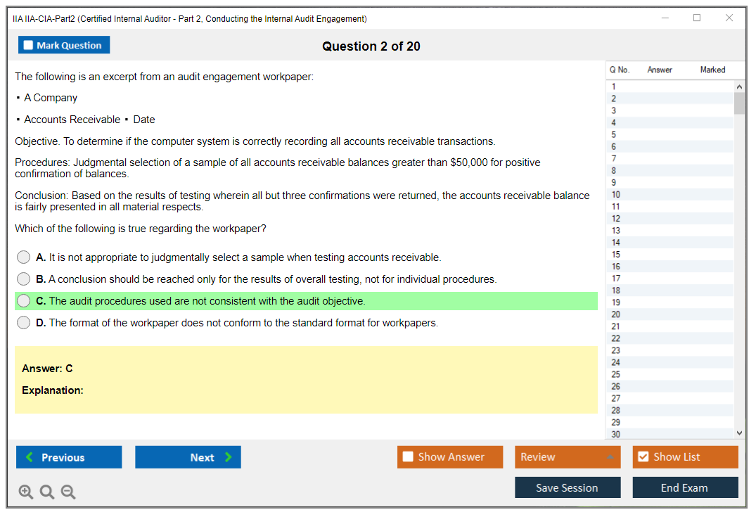 The IIA IIA-CIA-Part2 exam, also known as the Practice of Internal Auditing, is the second part of the Certified Internal Auditor (CIA) certification. It assesses a candidate's ability to apply internal audit concepts and techniques to real-world situations.