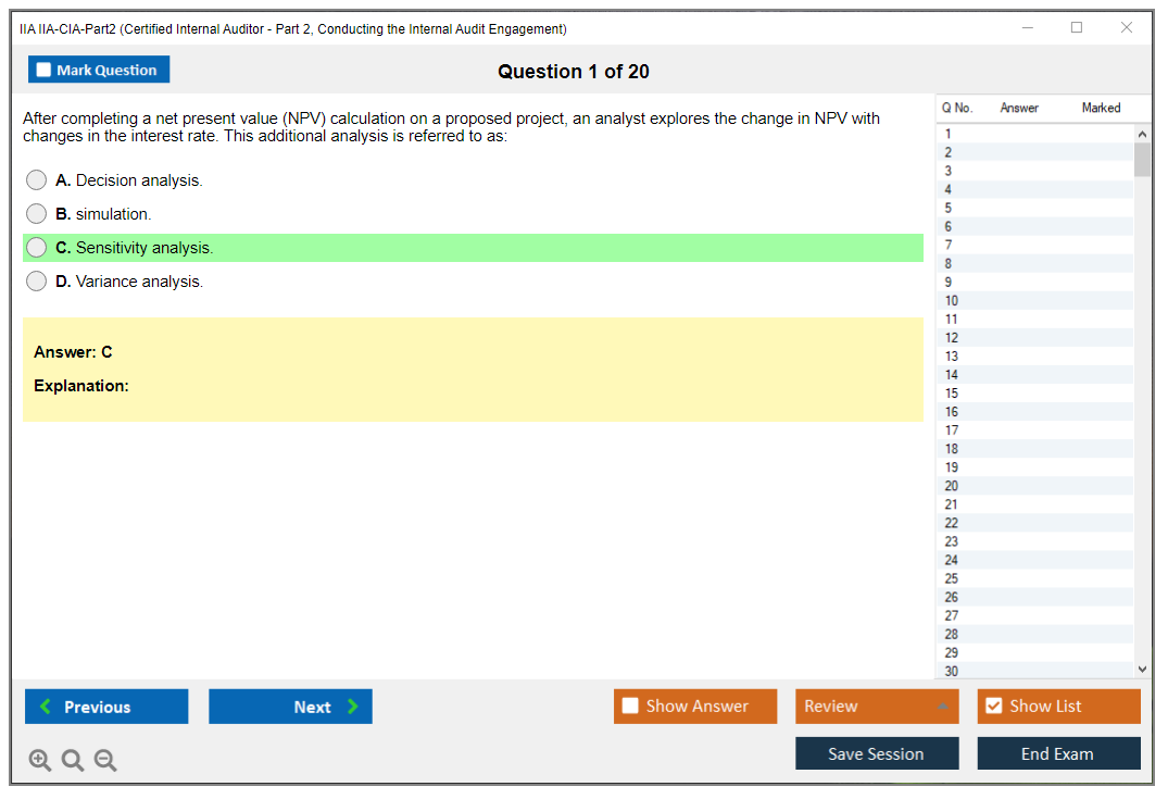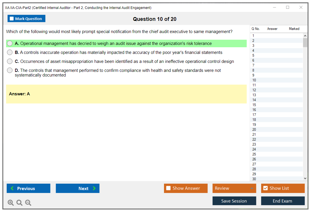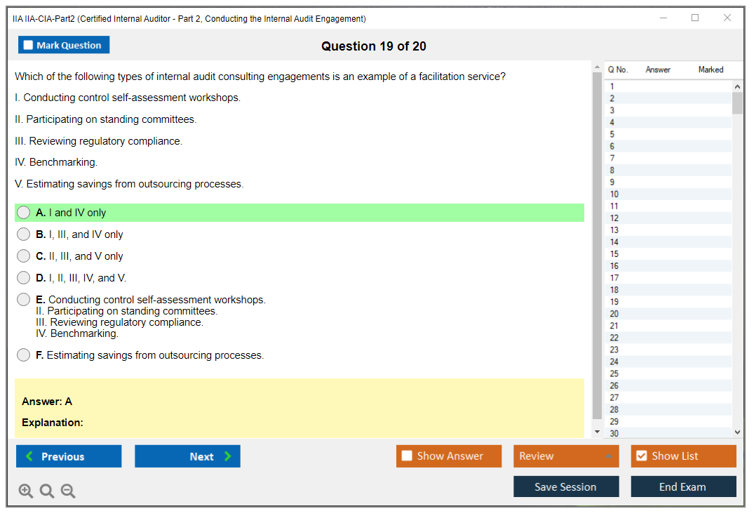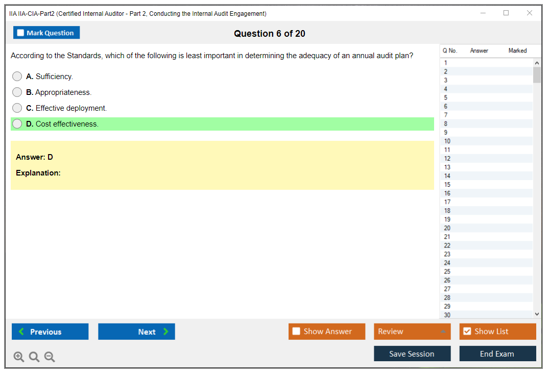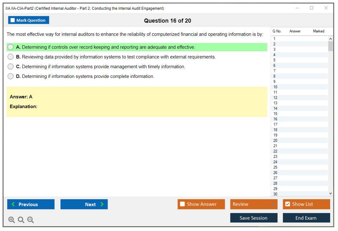 The IIA IIA-CIA-Part2 exam, also known as the Practice of Internal Auditing, is the second part of the Certified Internal Auditor (CIA) certification. It assesses a candidate's ability to apply internal audit concepts and techniques to real-world situations.