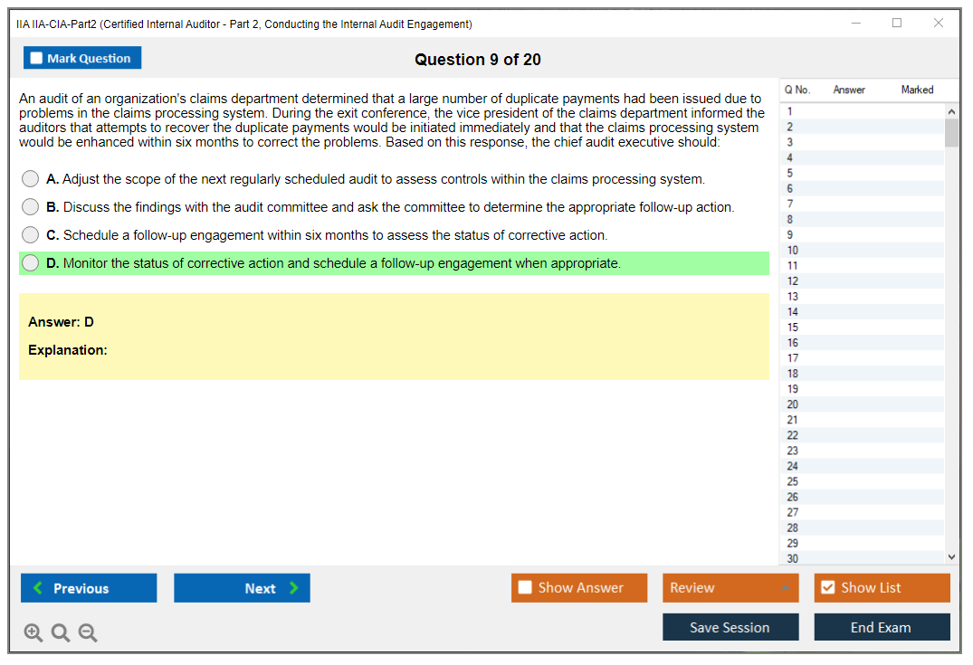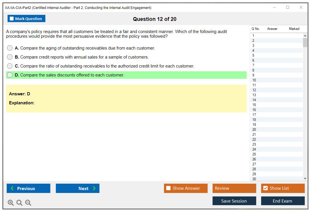 The IIA IIA-CIA-Part2 exam consists of 100 multiple-choice questions.