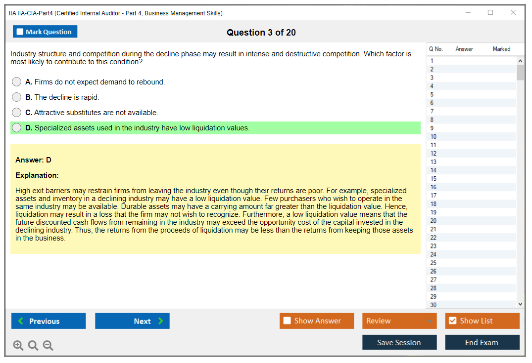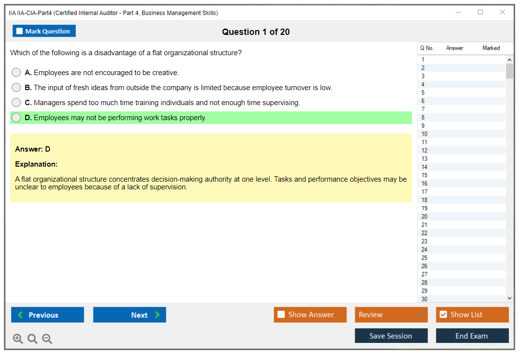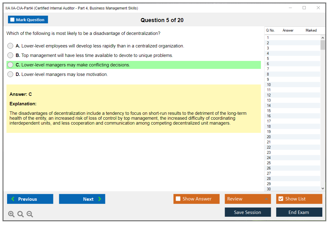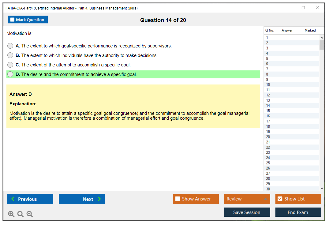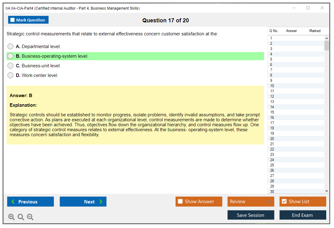 The IIA IIA-CIA-Part4 Exam is the fourth part of the Certified Internal Auditor (CIA) certification, which assesses a candidate's understanding of business management skills.