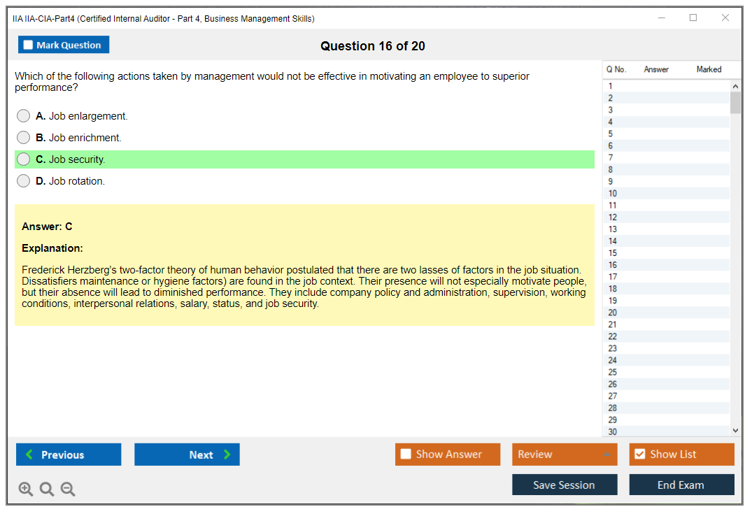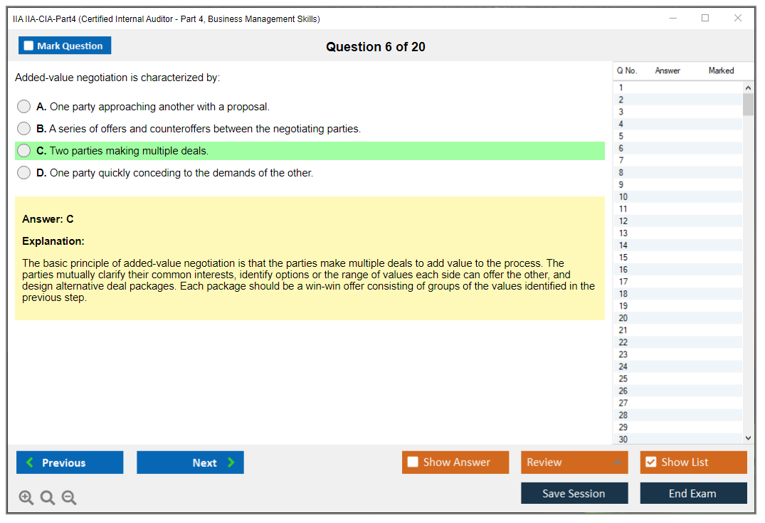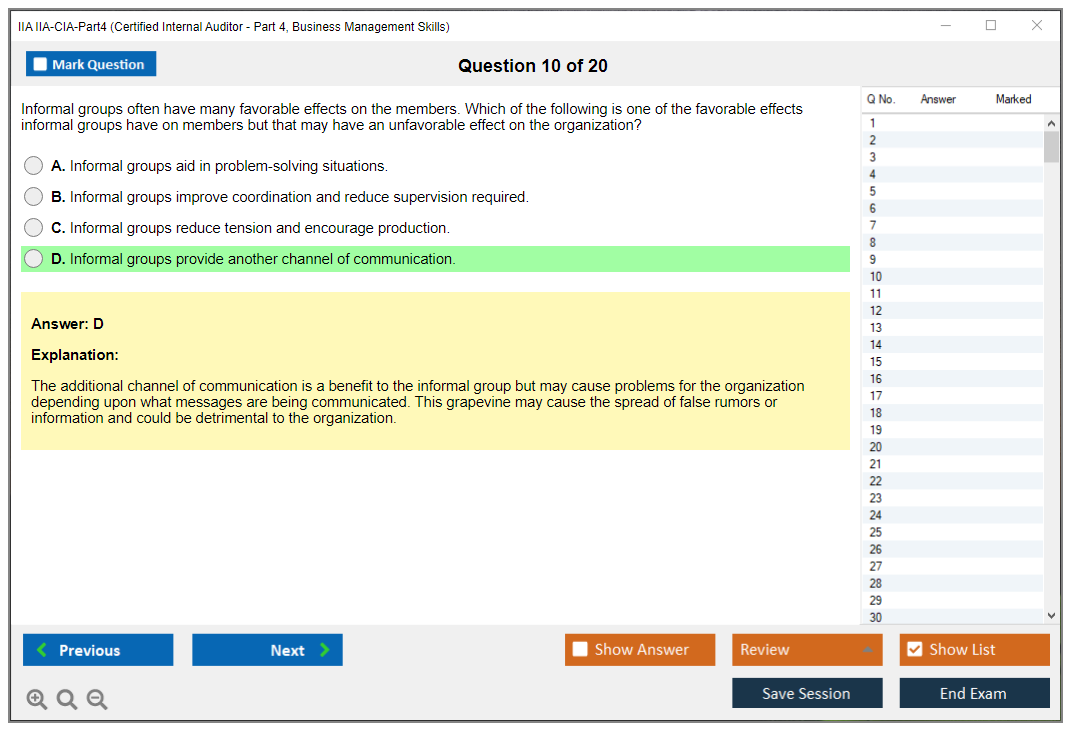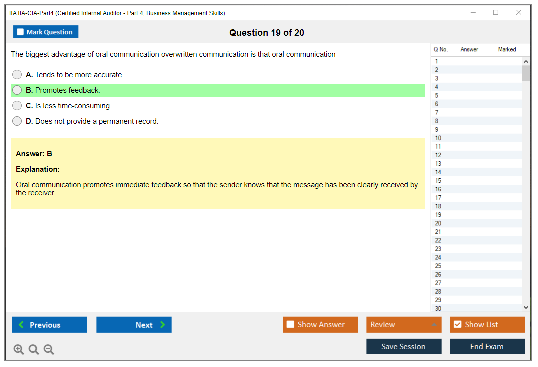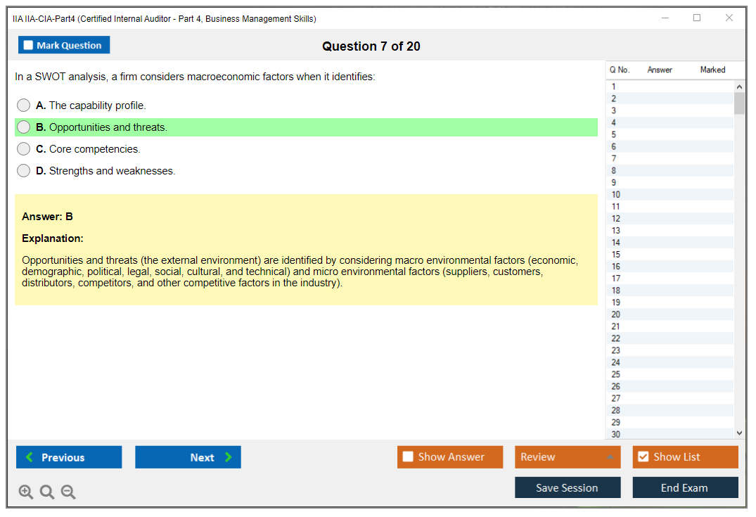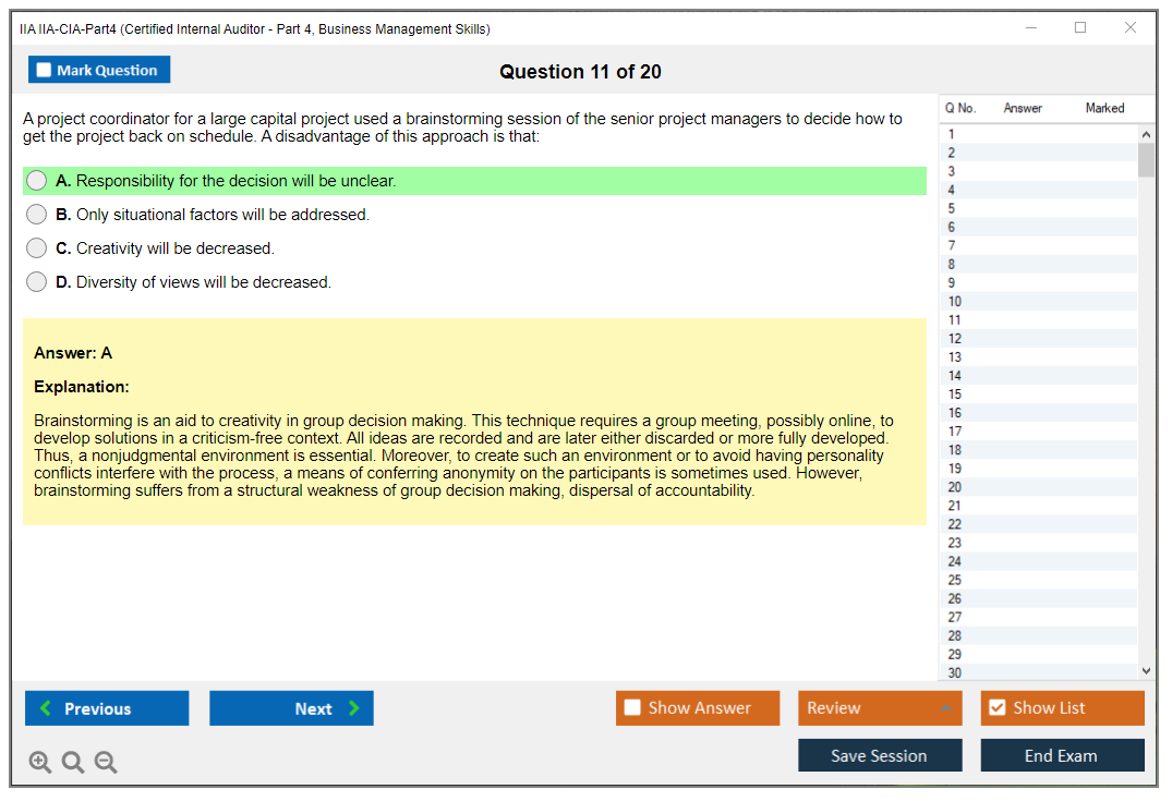 The IIA IIA-CIA-Part4 Exam is the fourth part of the Certified Internal Auditor (CIA) certification, which assesses a candidate's understanding of business management skills.