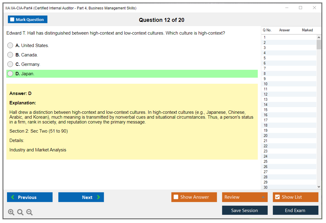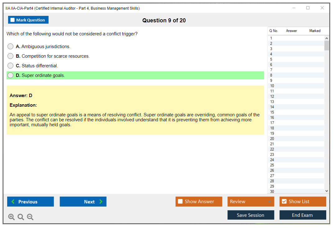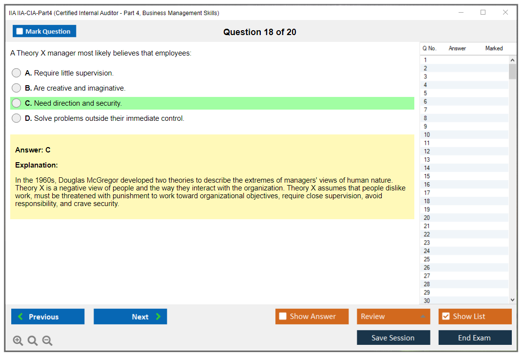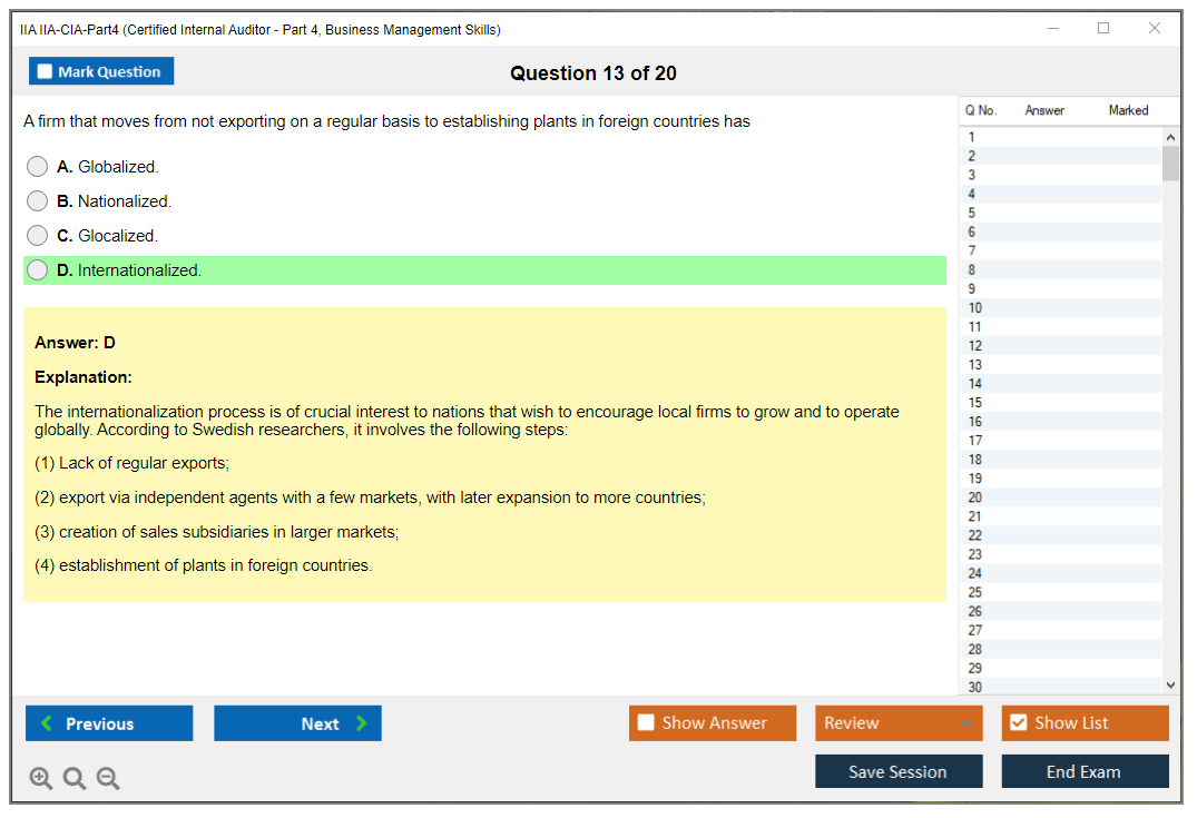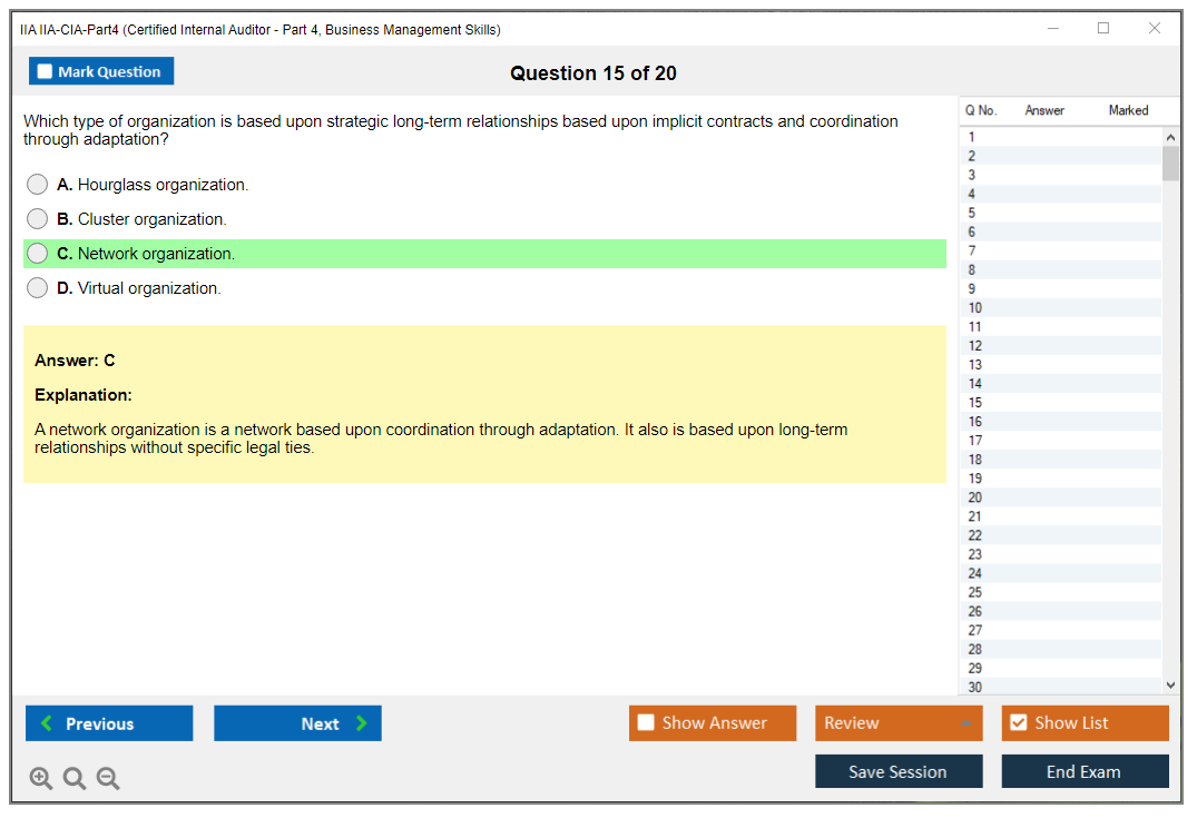 The IIA IIA-CIA-Part4 Exam is the fourth part of the Certified Internal Auditor (CIA) certification, which assesses a candidate's understanding of business management skills.