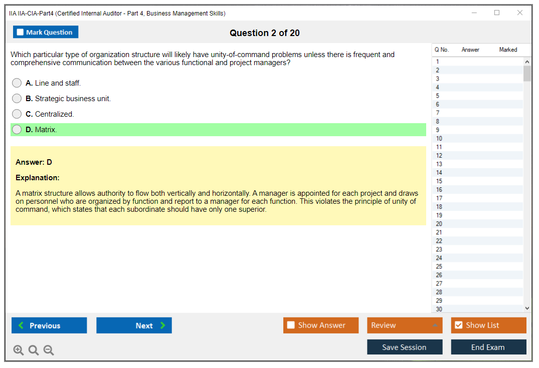 The question format of the IIA IIA-CIA-Part4 Exam is multiple-choice.