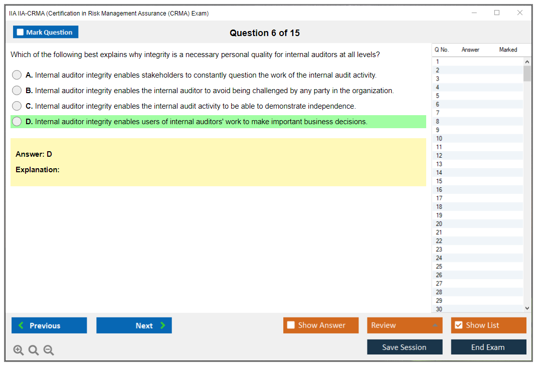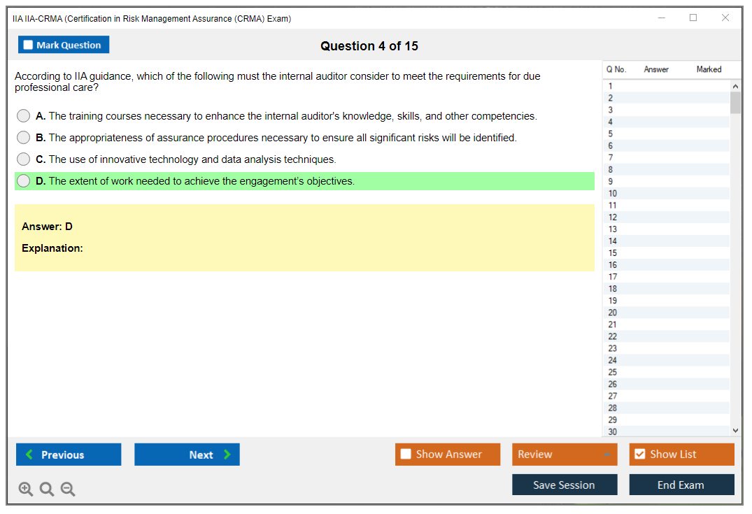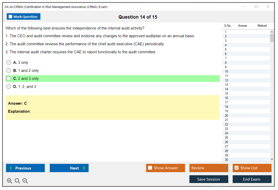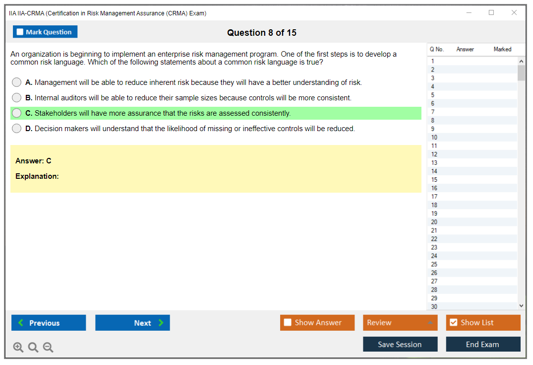 The IIA IIA-CRMA (Certification in Risk Management Assurance) Exam is a professional credential offered by The Institute of Internal Auditors (IIA) that focuses on risk management assurance, governance, and quality assurance.