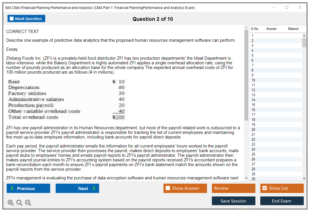 What are the Sample Questions of IMA CMA-Financial-Planning-Performance-and-Analytics Exam?