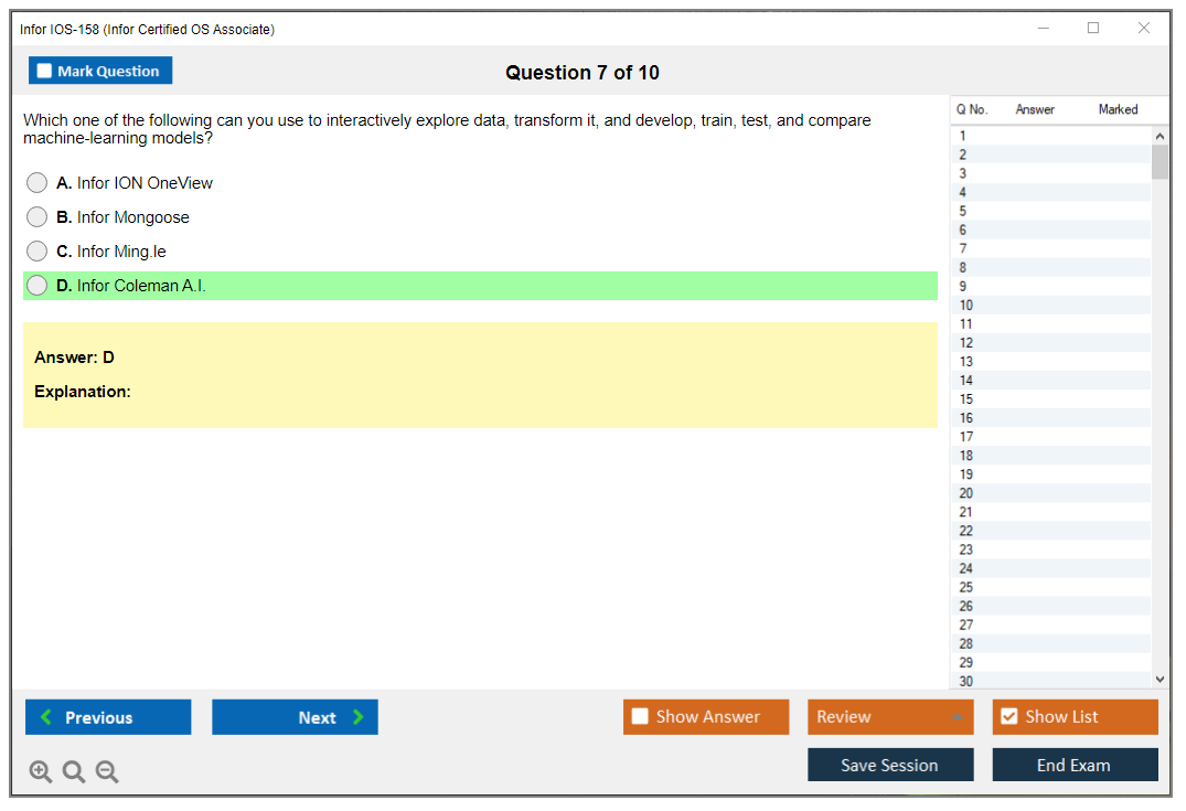 The Infor IOS-158 Exam is a certification test for individuals looking to prove their expertise in Infor Operating Services. It covers various aspects of the Infor OS platform, including its architecture, functionalities, and best practices for implementation and management.