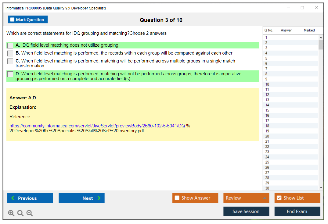 The Informatica PR000005 (Data Quality 9.x Developer Specialist) Exam is designed to test the skills and knowledge of candidates in using Informatica Data Quality to develop, implement, and maintain data quality solutions.