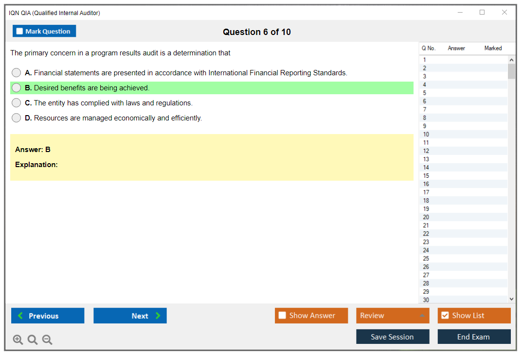 The IQN QIA (Qualified Internal Auditor) Exam is a certification designed to validate the knowledge and skills of internal auditors. It is offered by the International Qualifications Network (IQN) and aims to assess the competencies required to perform internal audits effectively.