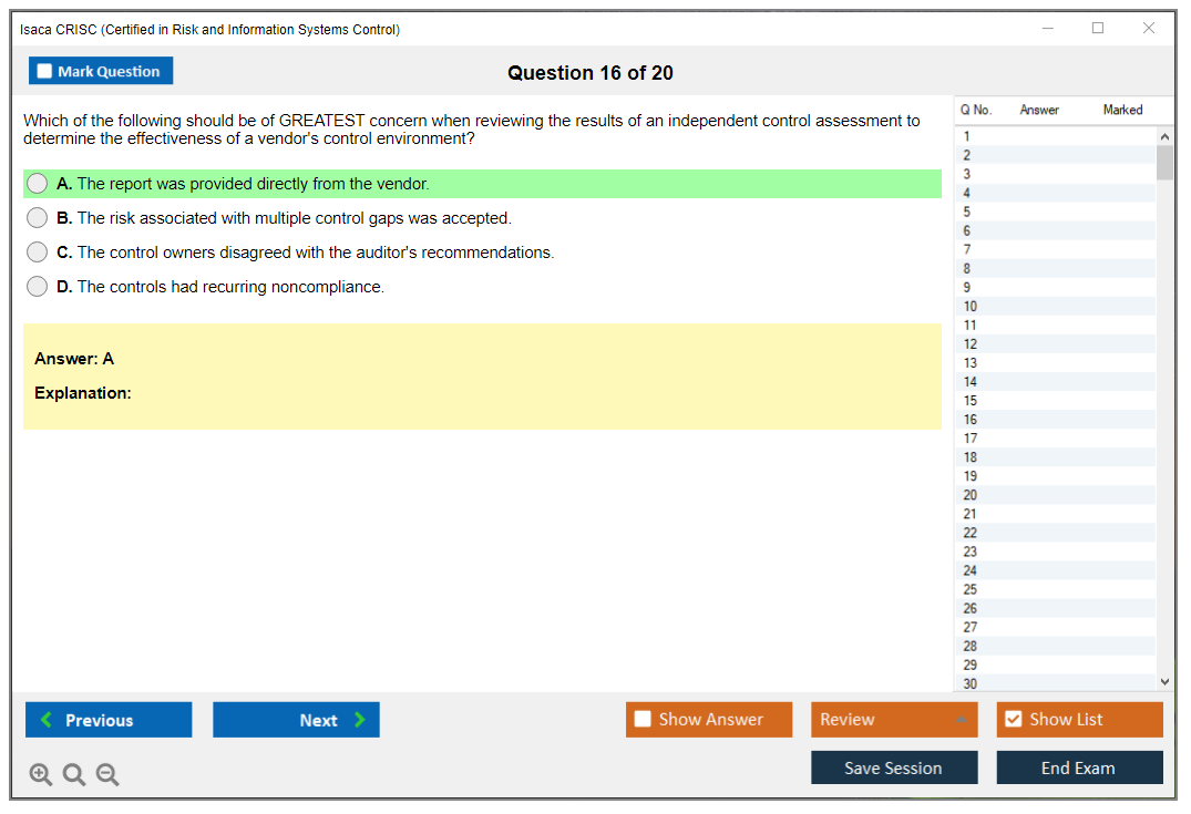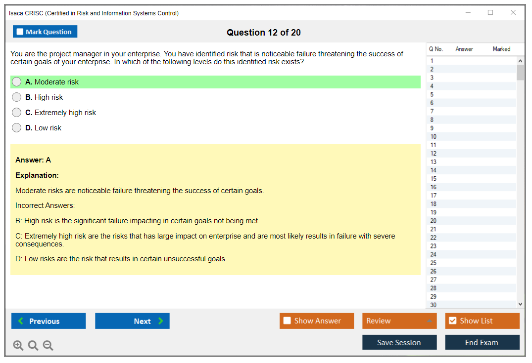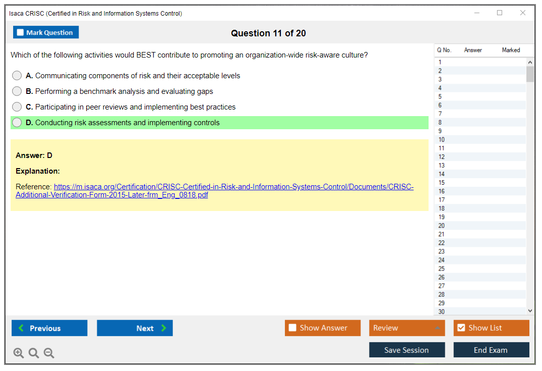The ISACA CRISC exam is a globally recognized certification that validates the expertise of IT professionals in managing enterprise IT risk and implementing and maintaining information systems controls. The certification is aimed at professionals who are responsible for risk management and control in an enterprise environment.