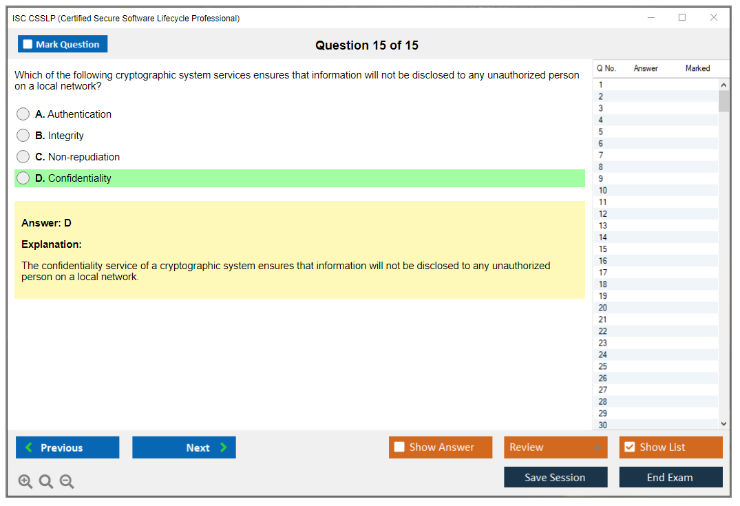 Investing in DumpsBoss CSSLP braindump authentic answers with authentic answers was the smartest move I made. Not only did I pass the exam on the first try, but the in-depth knowledge gained will be invaluable throughout my career. Top marks for DumpsBoss!