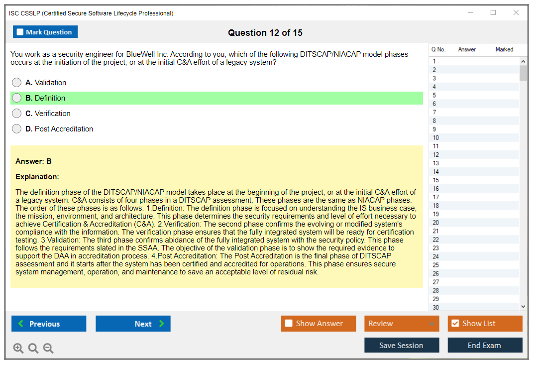 DumpsBoss is a lifesaver for CSSLP exam prep! Their extensive question bank and detailed explanations made studying straightforward and effective. Thanks to DumpsBoss, I passed with flying colors!