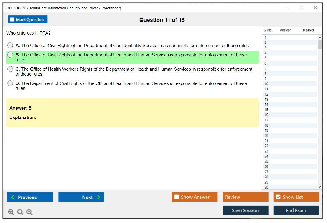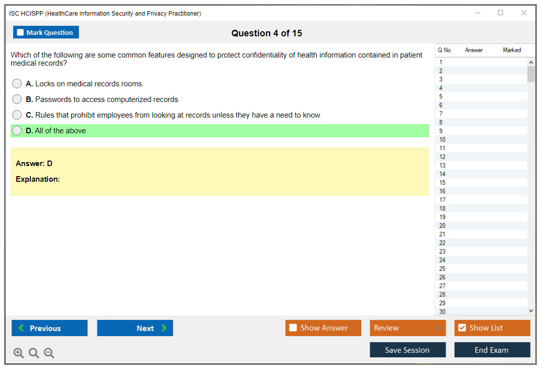 The ISC2 HCISPP Exam consists of multiple-choice questions.
