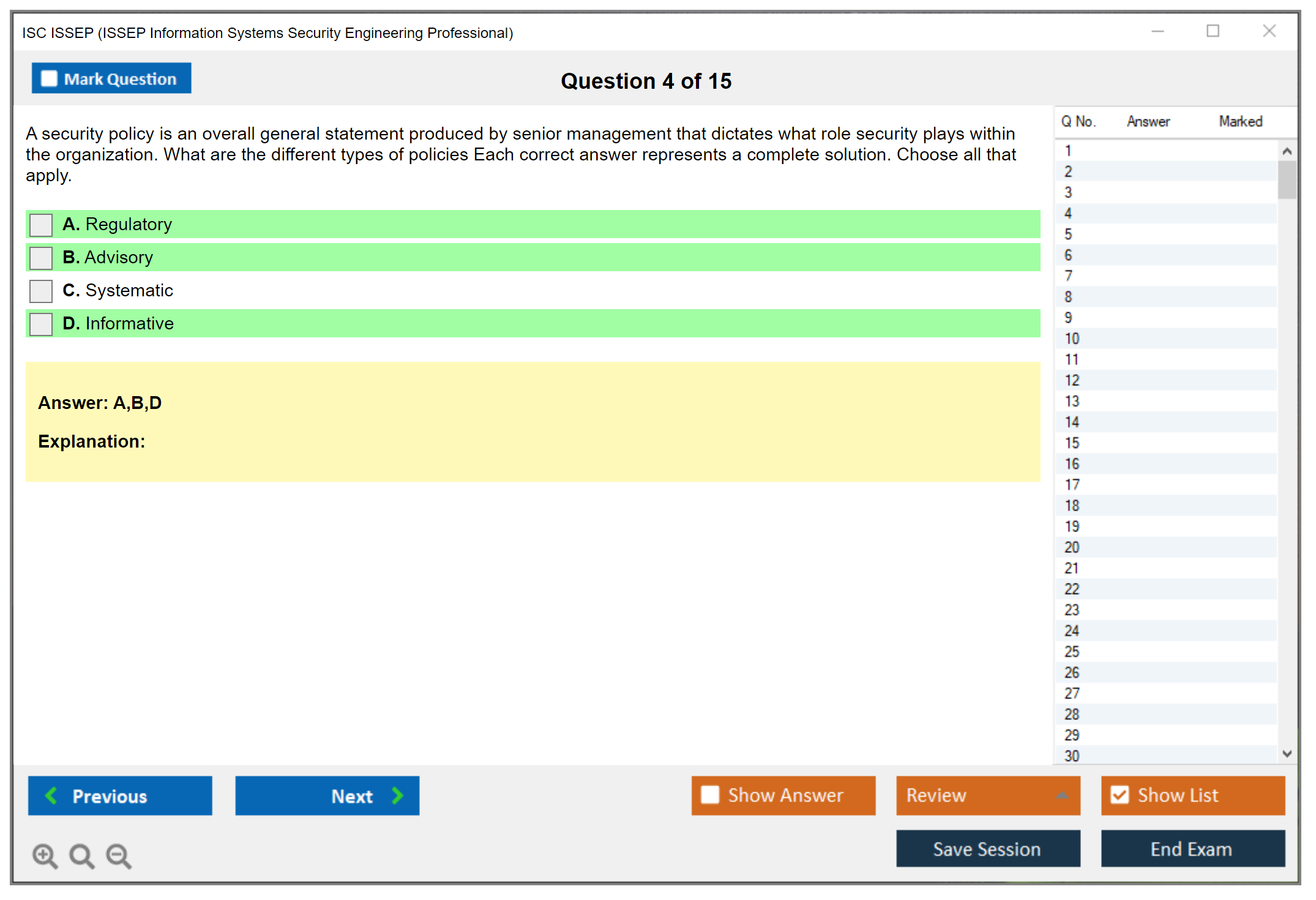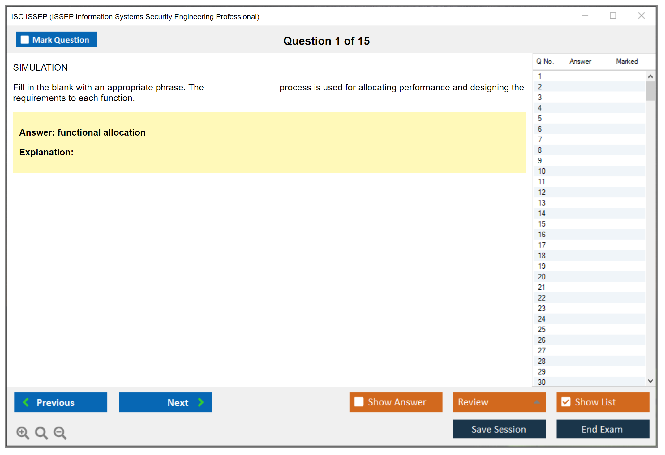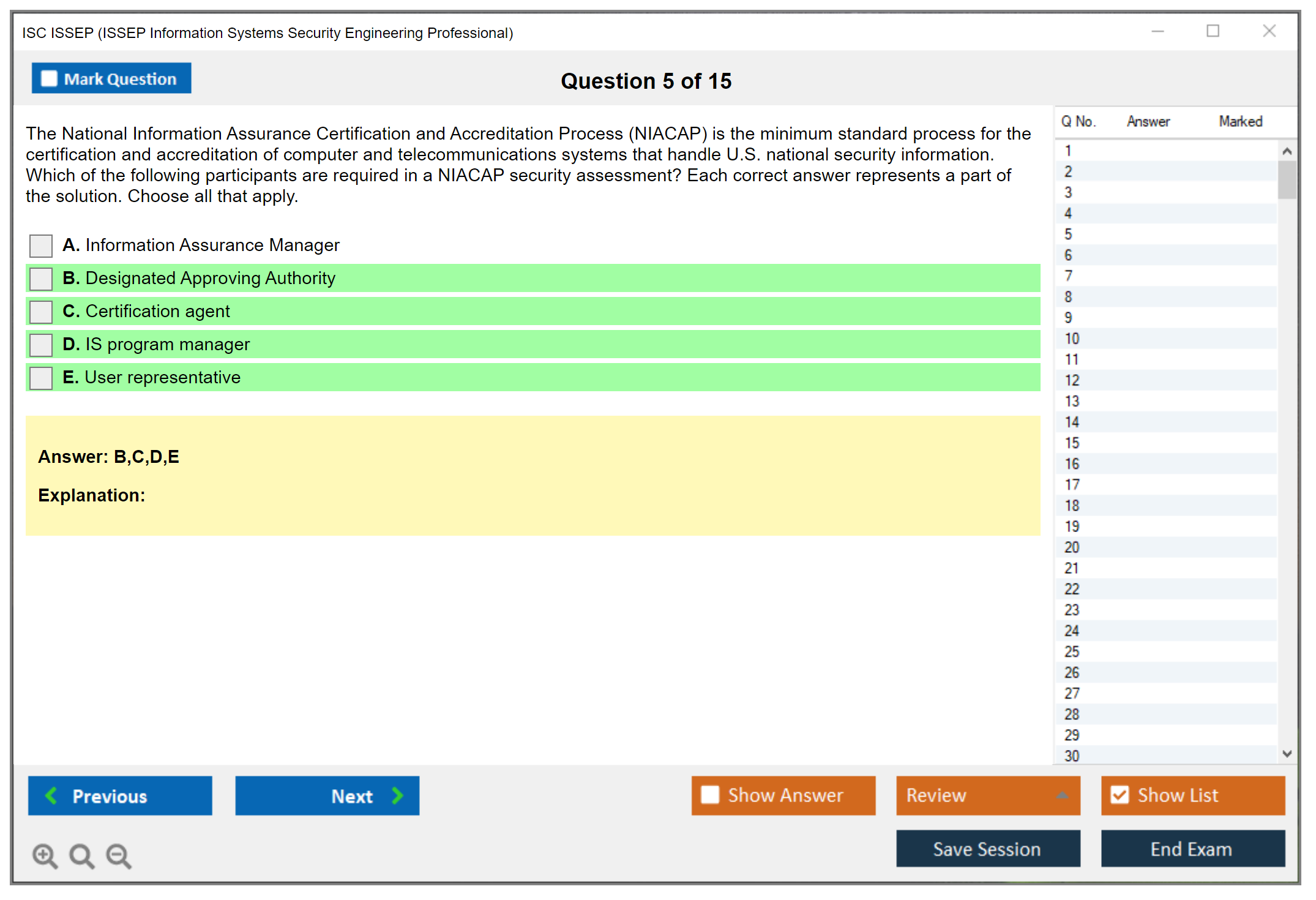 The ISC2 ISSEP exam consists of multiple-choice questions.