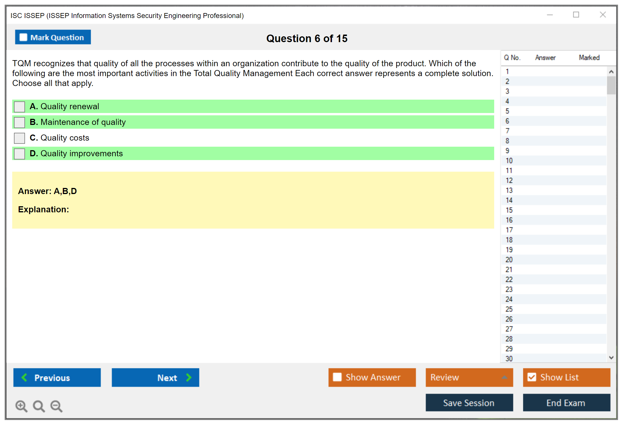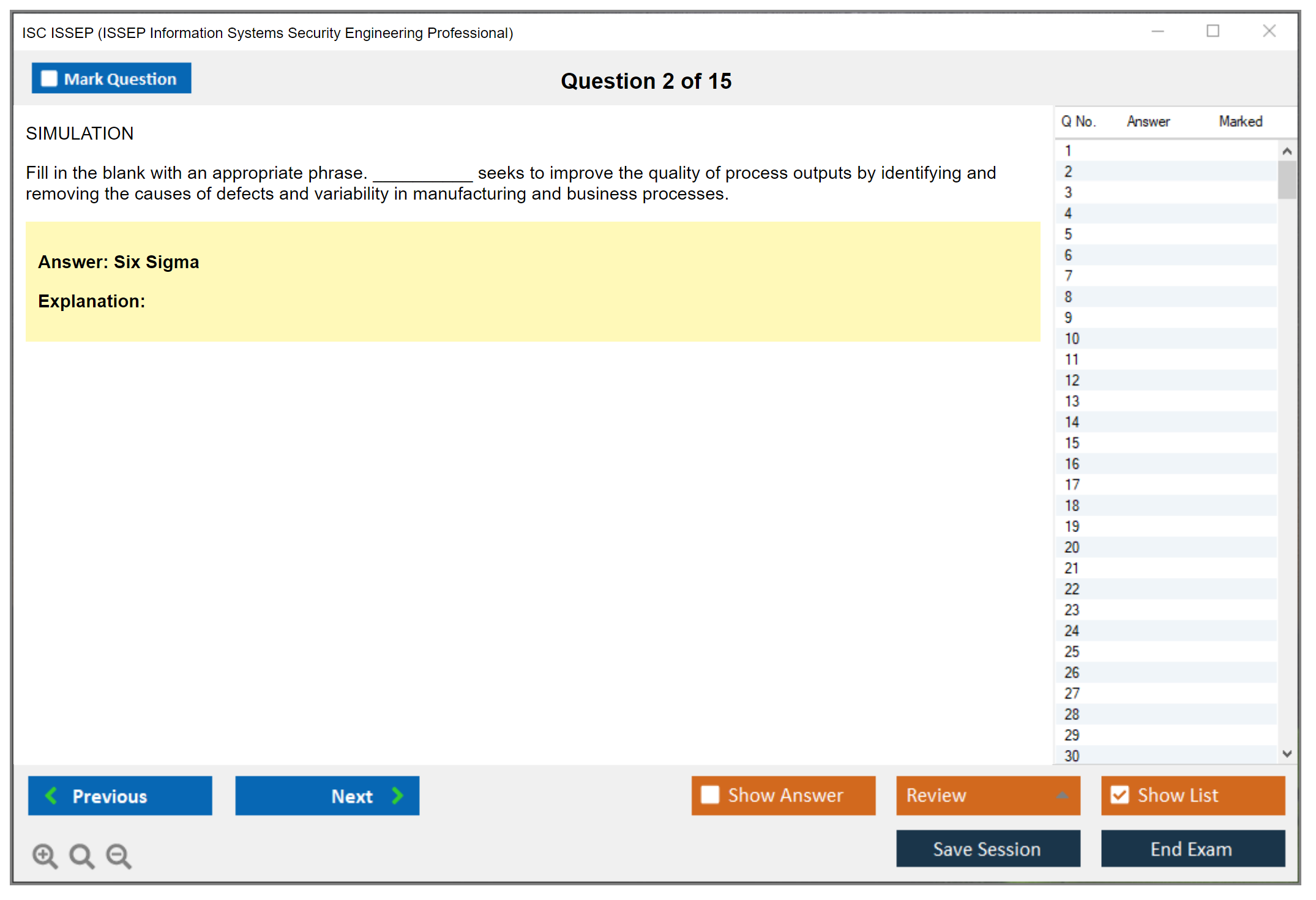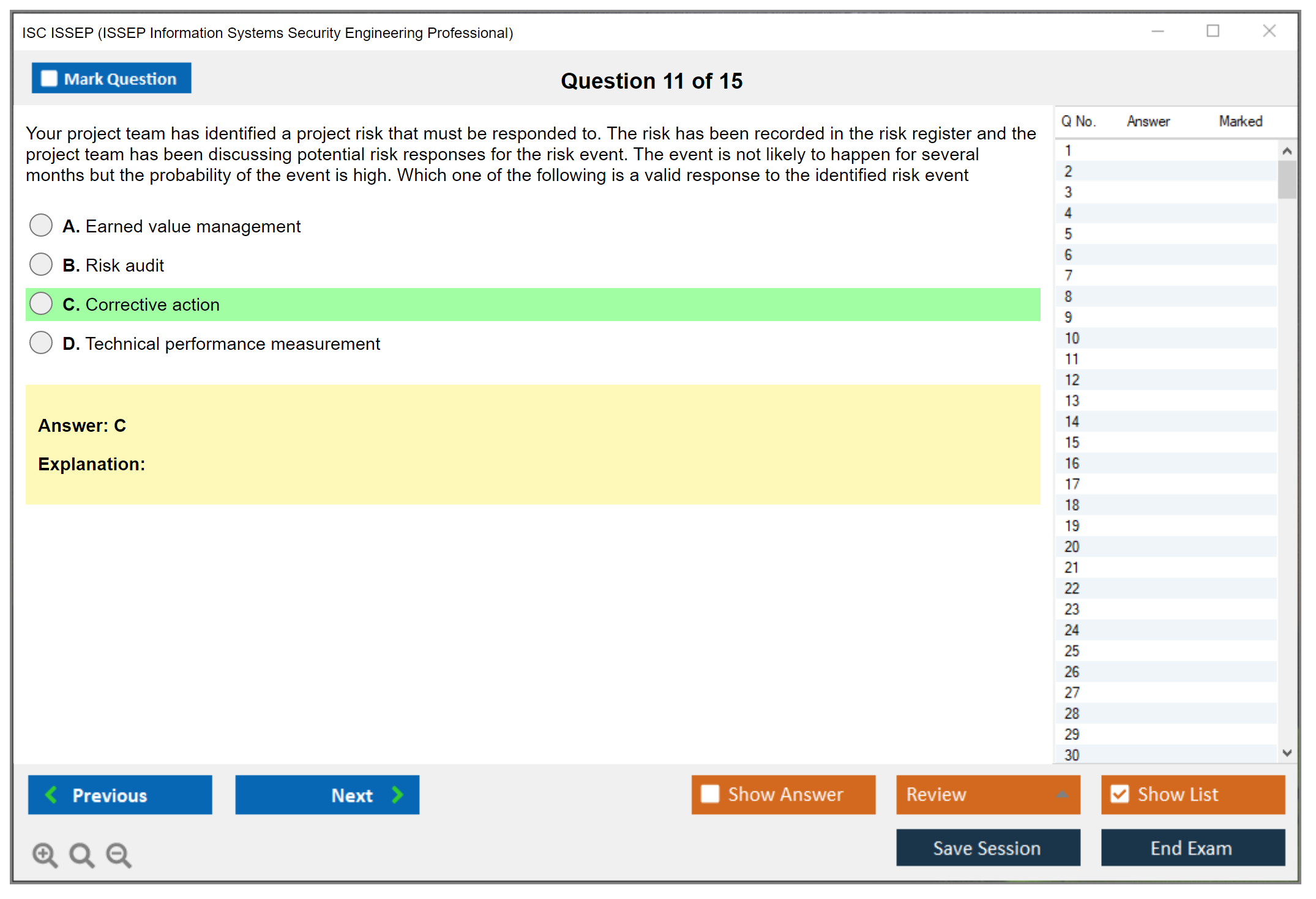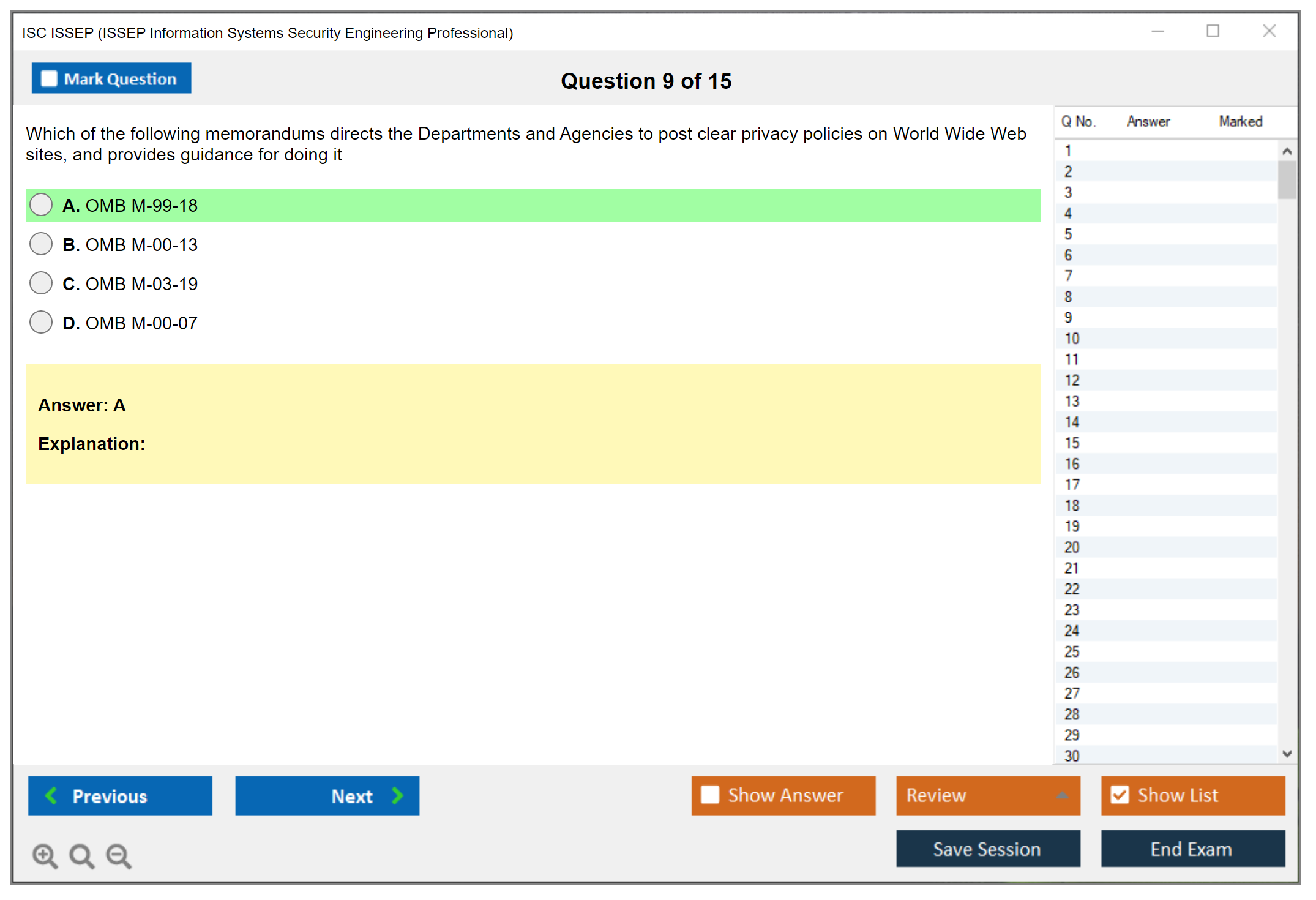 The ISC2 ISSEP exam consists of multiple-choice questions.