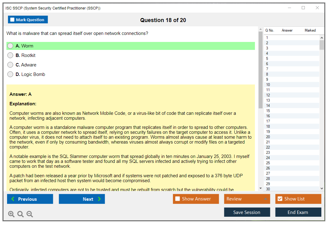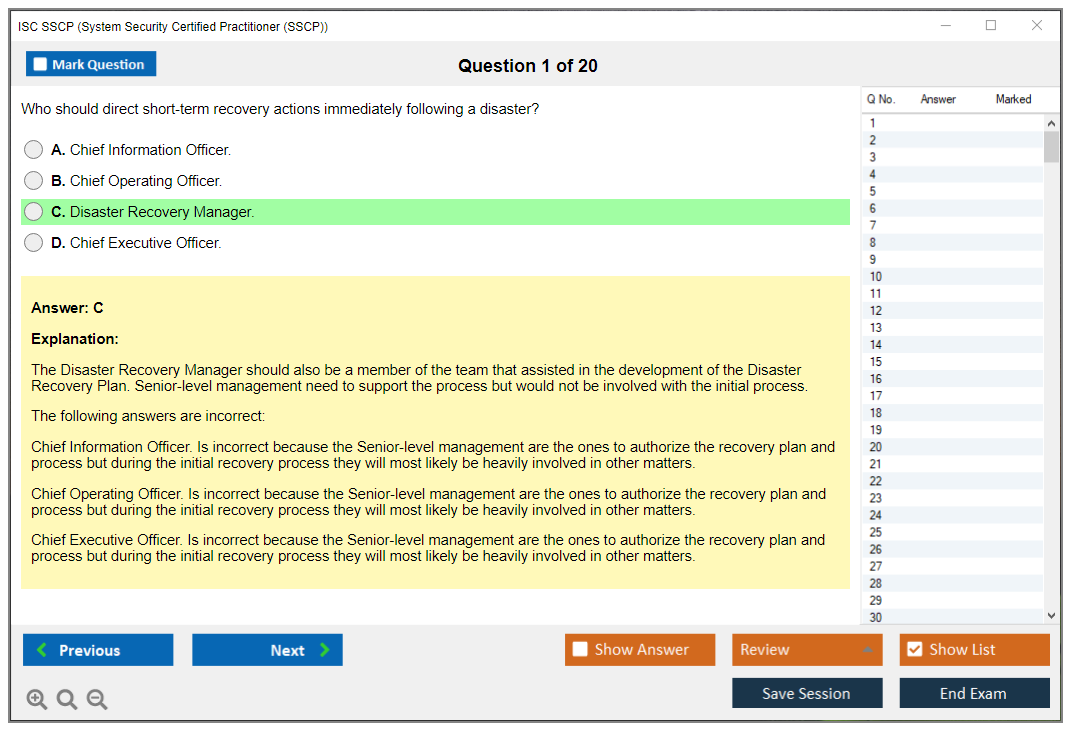The ISC2 SSCP (Systems Security Certified Practitioner) Exam is designed for IT professionals seeking to validate their skills and knowledge in implementing and managing IT infrastructure while ensuring the security of the data and systems within an organization.