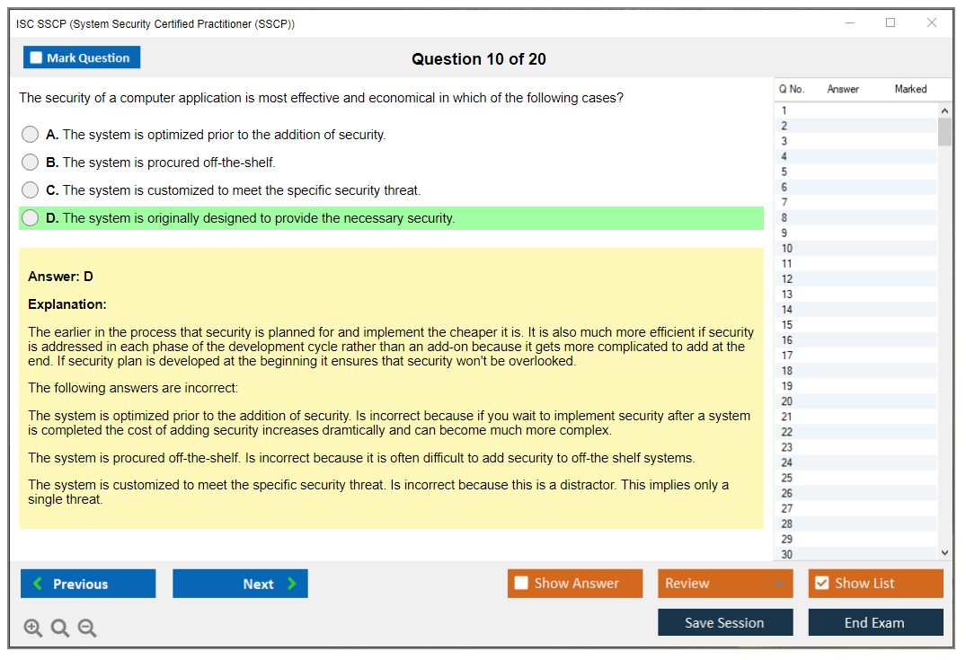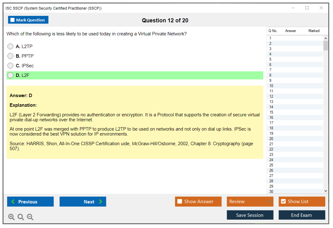 The ISC2 SSCP Exam uses a multiple-choice question format.