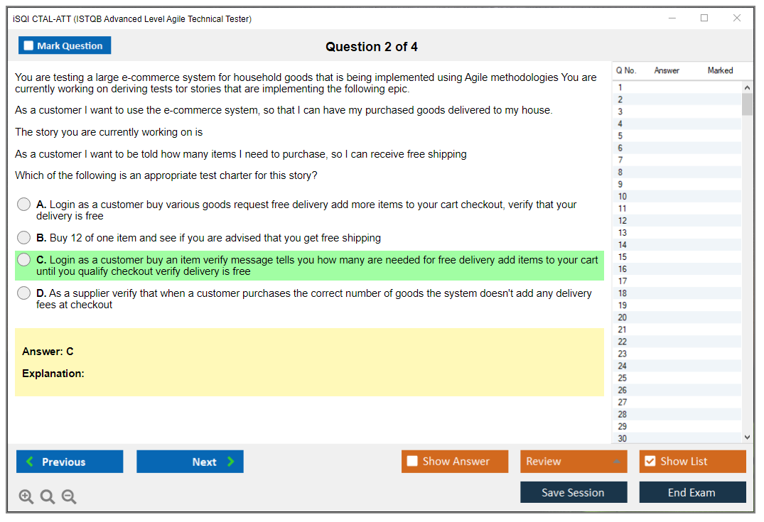 The iSQI CTAL-ATT (Certified Tester Advanced Level Agile Technical Tester) Exam is a certification designed for testers who are working in Agile environments and want to advance their technical skills and knowledge in Agile testing methodologies.