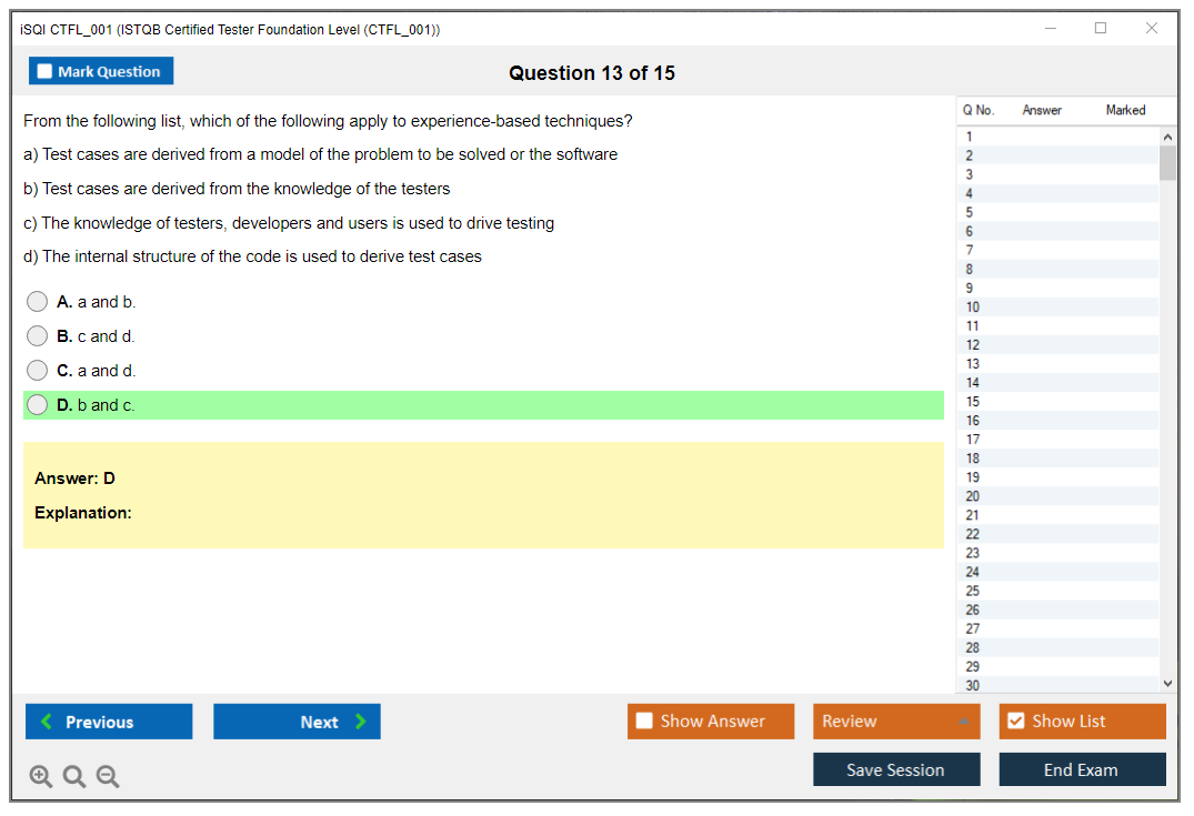The iSQI CTFL_001 exam consists of 40 multiple-choice questions.