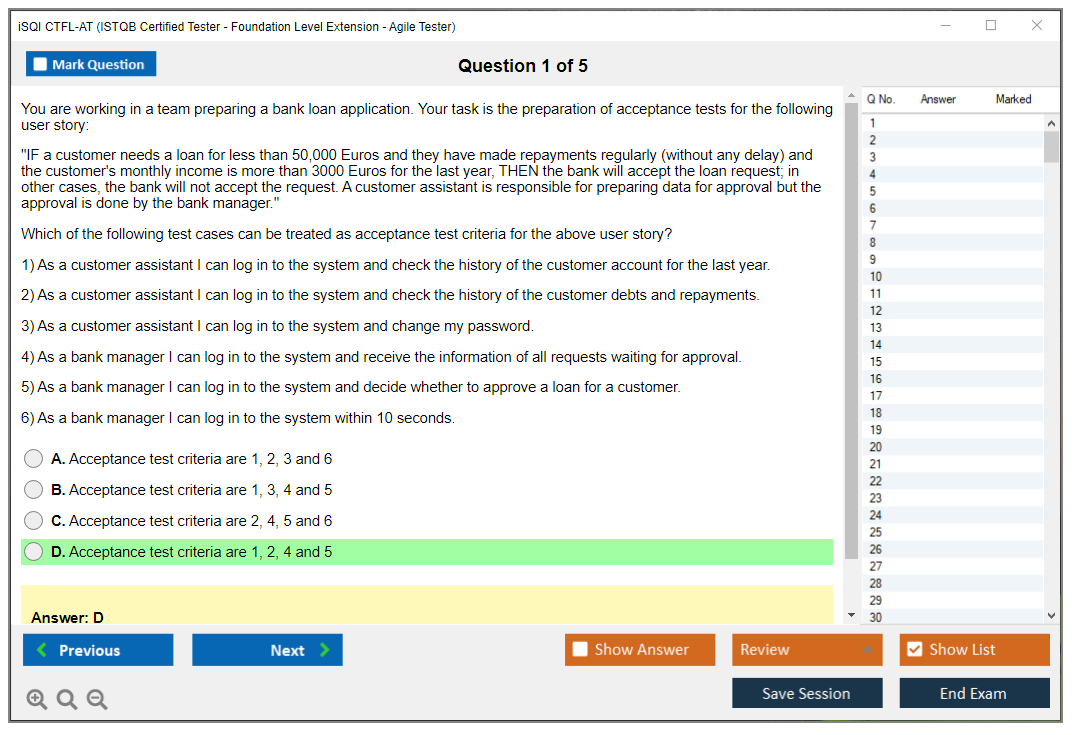 Earning my ctfl-at certification was a game-changer for my career. DumpsBoss played a vital role in getting me there. Their CTFL-AT dumps and practice tests provided the edge I needed. The investment in DumpsBoss was well worth it – highly recommend for anyone serious about their CTFL-AT journey.