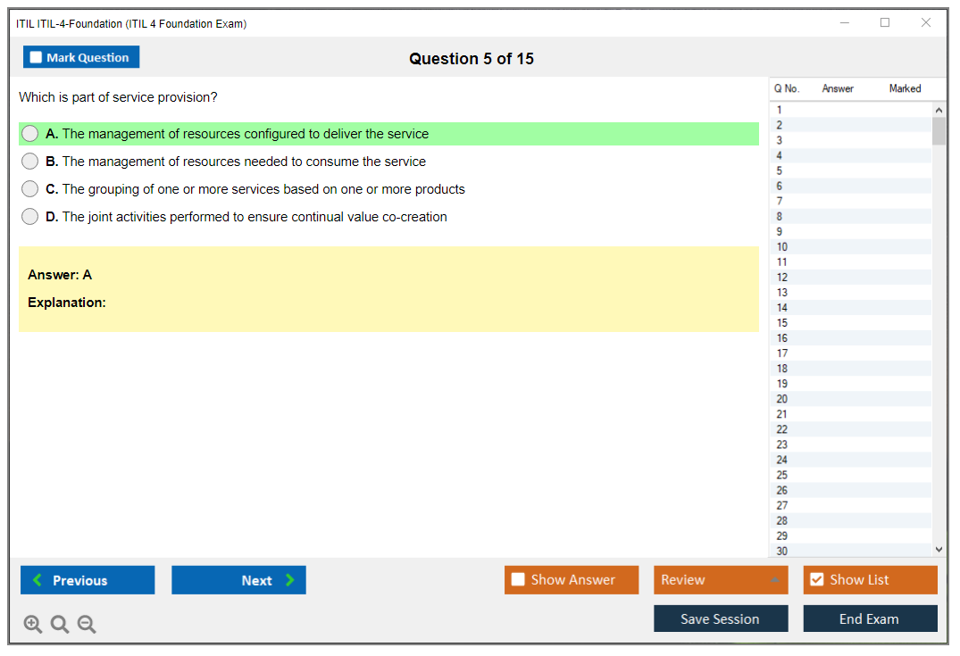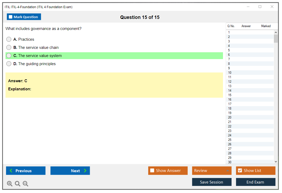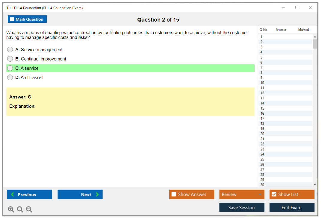 The question format of the ITIL 4 Foundation Exam is multiple-choice.