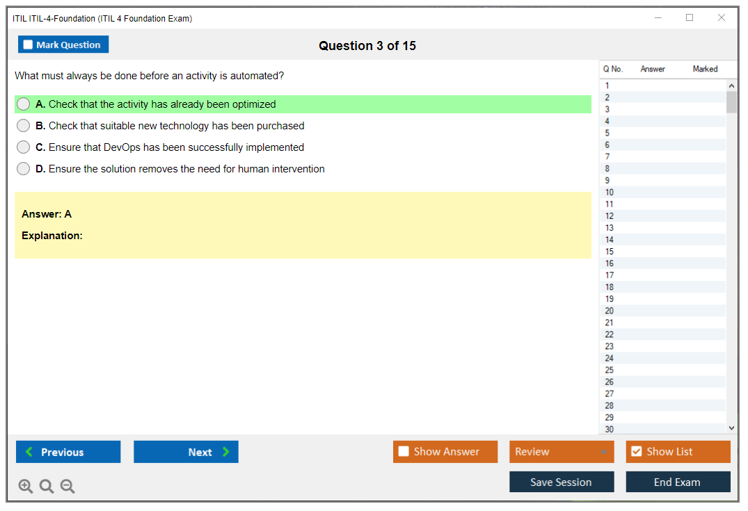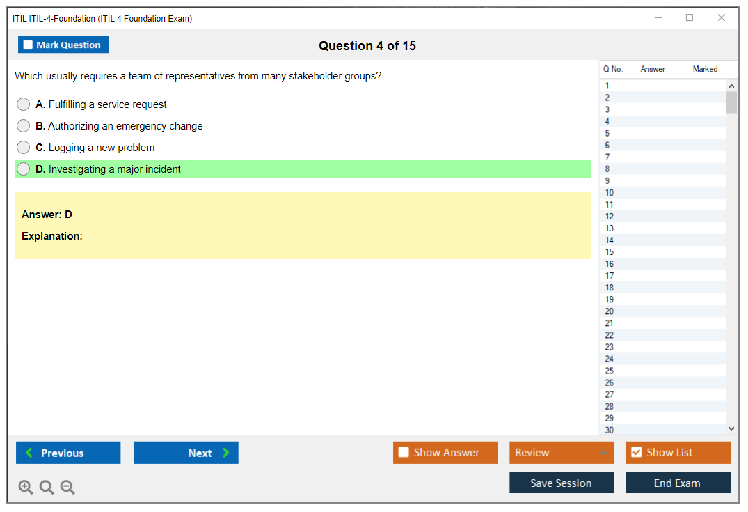 The ITIL 4 Foundation Exam is administered by various Accredited Training Organizations (ATOs) and Examination Institutes (EIs) such as PeopleCert.