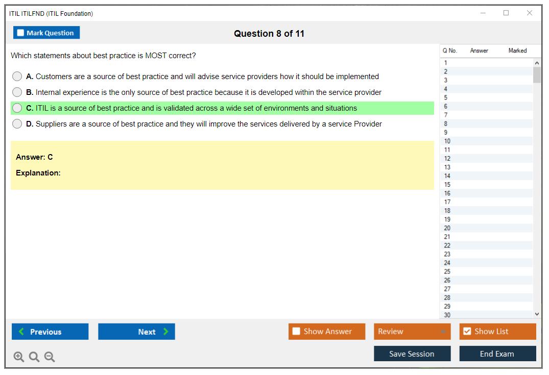 The ITIL ITILFND exam consists of multiple-choice questions.
