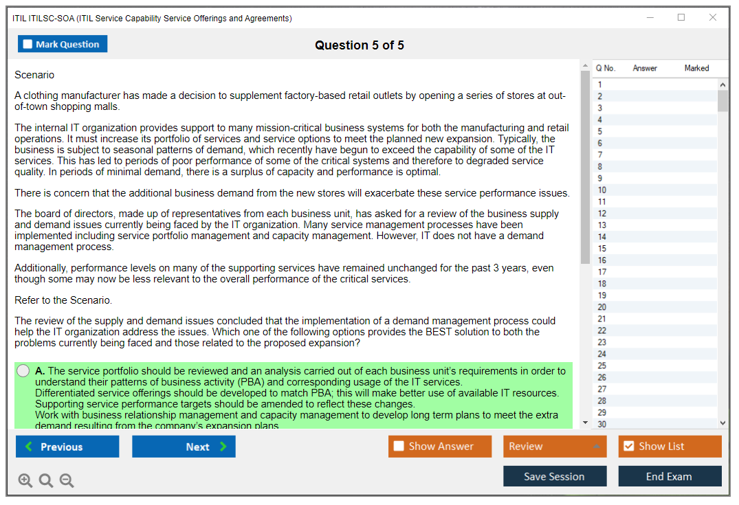 ITILSC-SOA (ITIL Service Capability Service Offerings and Agreements) PDF, Test Engine and Training Course