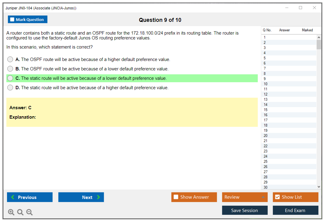 JN0-104 Exam Dumps from DumpsBoss are a masterpiece. The questions are challenging, and the detailed explanations are a valuable resource for understanding the concepts of Juniper Networks Certified Internet Associate (JNCIA).