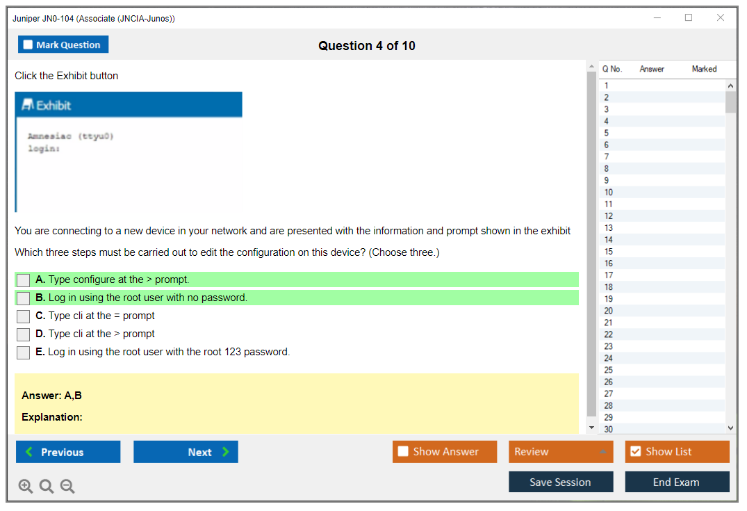 I used DumpsBoss JN0-104 questions to prepare for my exam, and I couldn't be happier with the results. The questions are challenging yet relevant, and the explanations are detailed. Highly recommended!