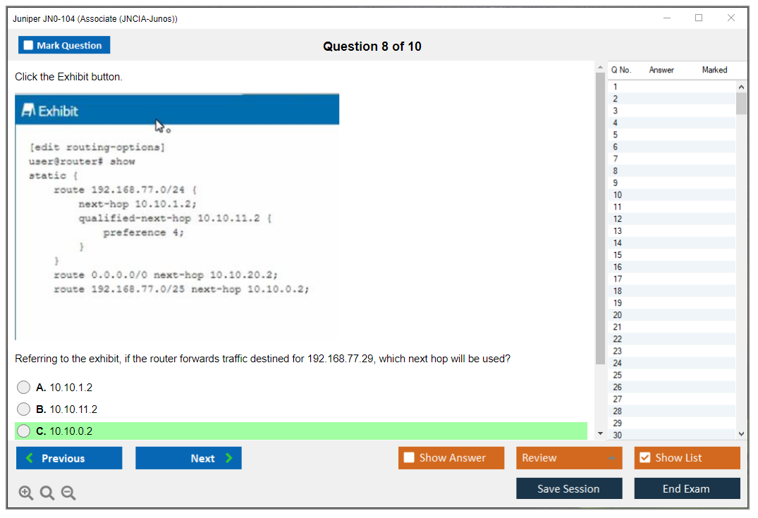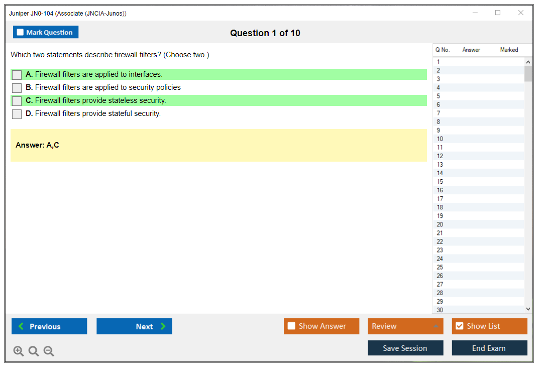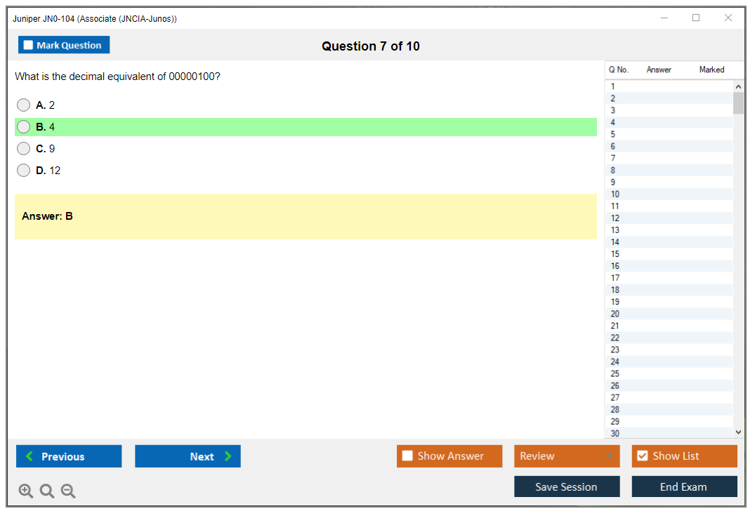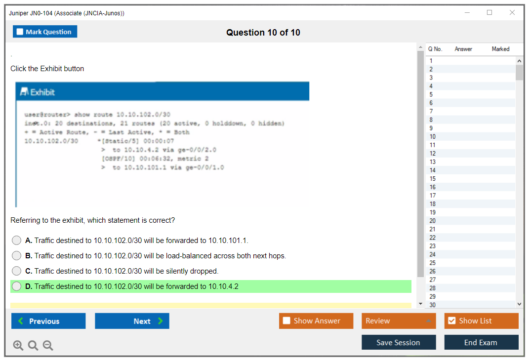 DumpsBoss was a lifesaver for my JN0-104 prep JN0-104 Exam Questions. The practice exams mirrored the actual test format perfectly, boosting my confidence on exam day. Plus, their customer service was amazing - they answered all my questions promptly and professionally.