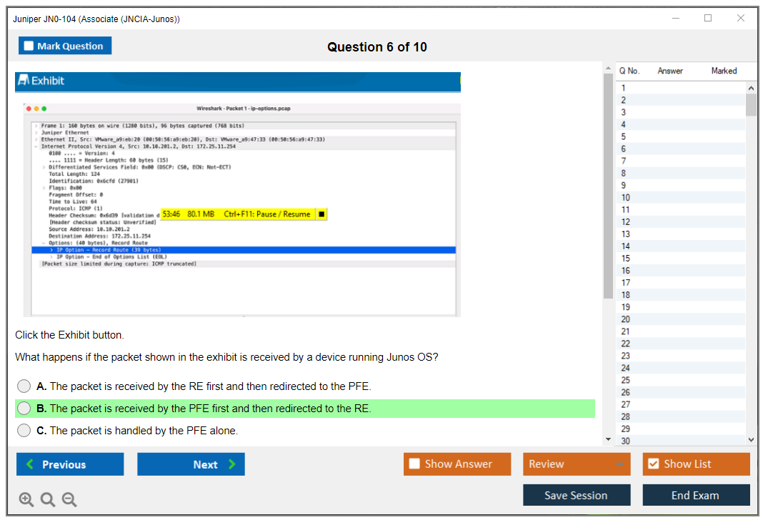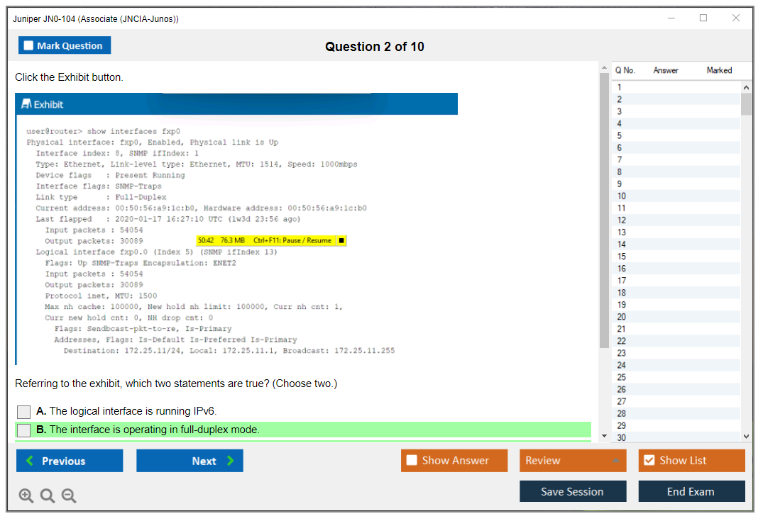 I owe my JN0-104 exam triumph to DumpsBoss. The detailed Exam Dumps and real-world scenarios were the perfect recipe for a top-notch preparation in Juniper Networks Certified Internet Associate (JNCIA).