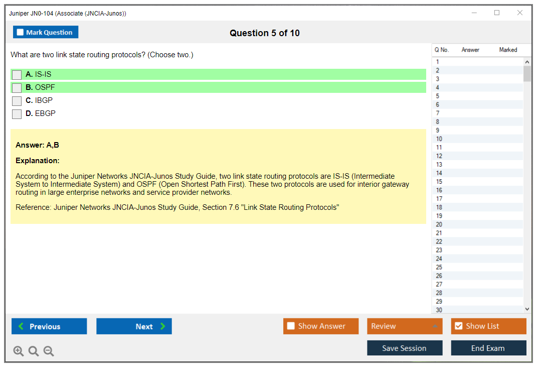 DumpsBoss's JN0-104 Study Guide exceeded expectations. The in-depth explanations and real-world examples made Junos concepts easy to grasp. I particularly liked the structured learning approach, which kept me focused throughout my study journey. DumpsBoss is a must-have for anyone serious about JNCIA-Junos certification!