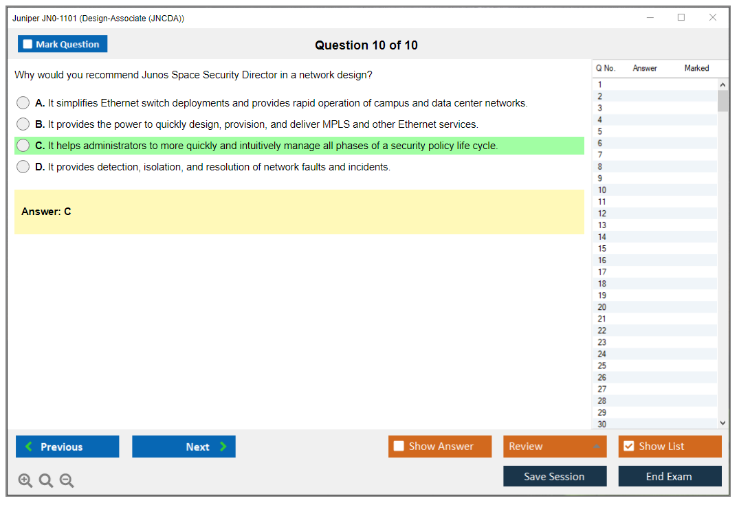 The Juniper JN0-1101 (Design-Associate (JNCDA)) exam is designed for individuals with basic networking knowledge and skills, aiming to validate their understanding of network design fundamentals, including customer requirements, design constraints, and design principles.