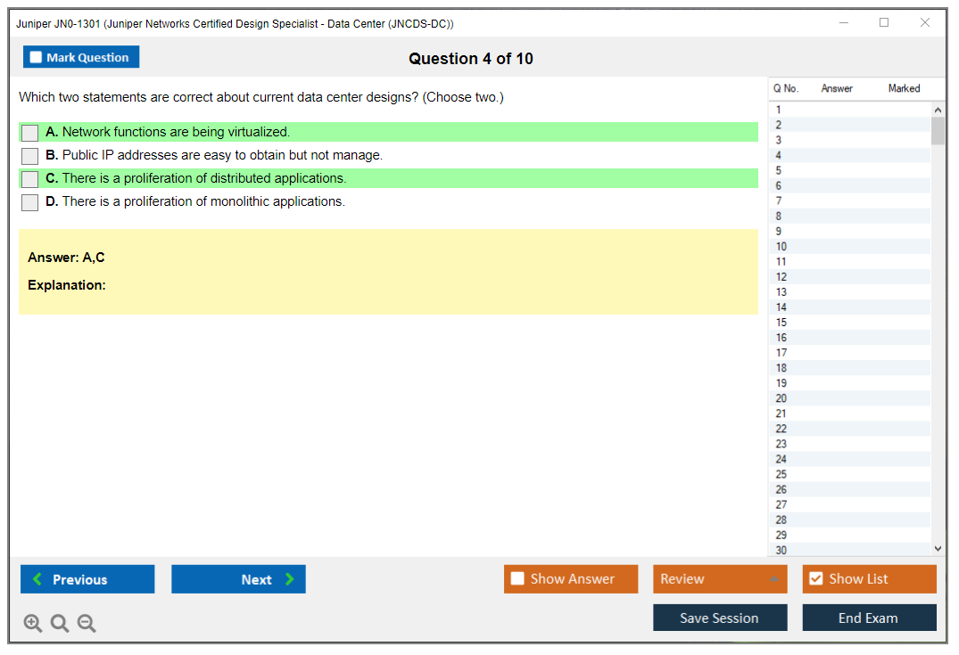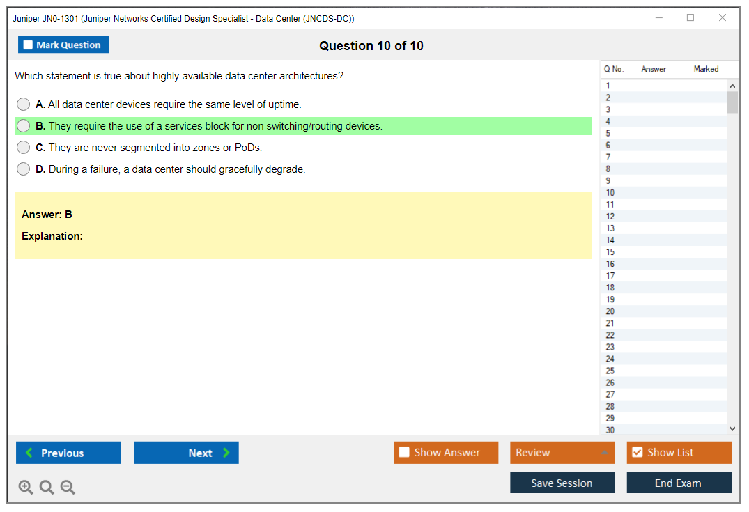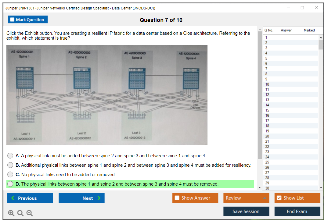 The Juniper JN0-1301 Exam is a certification test that assesses your understanding of data center network design principles and best practices. It is intended for professionals who design and manage data center networks using Juniper Networks technologies.