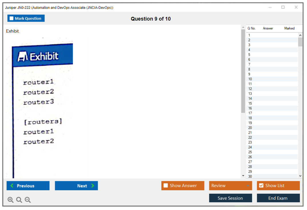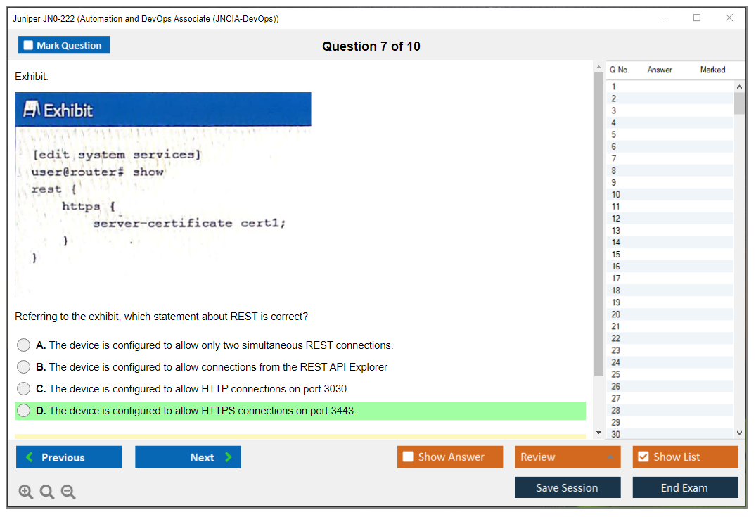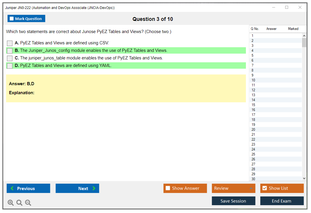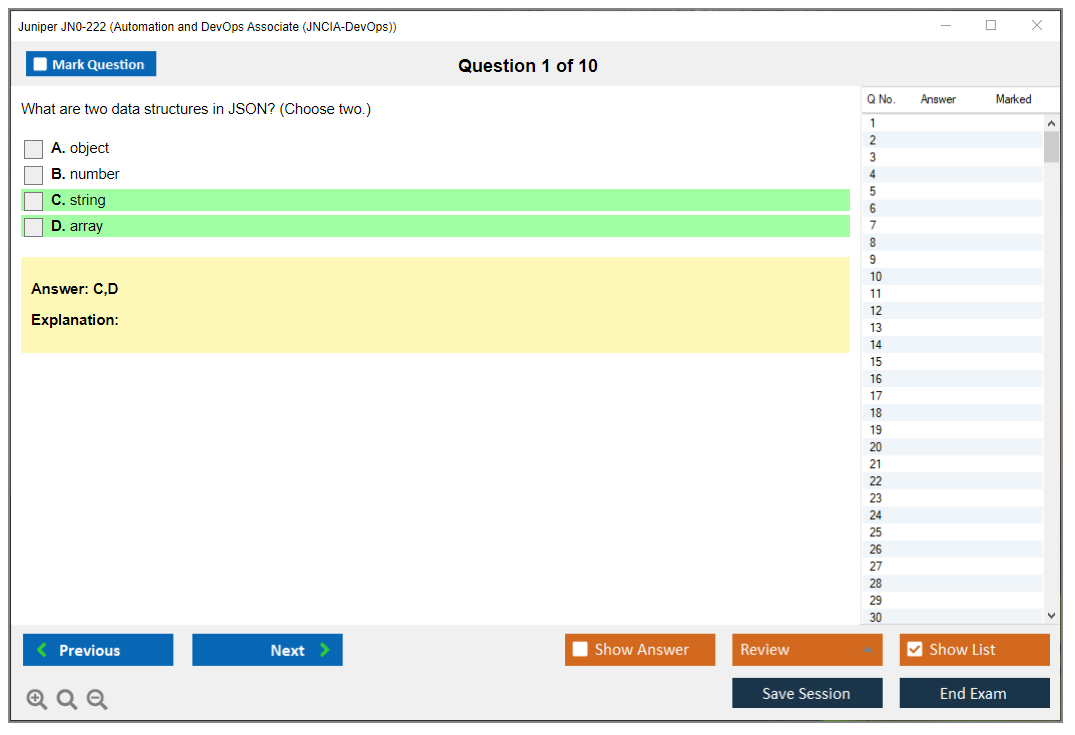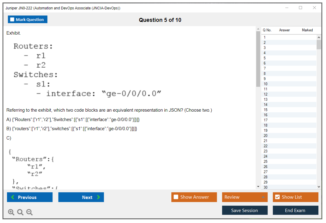 The Juniper JN0-222 exam is part of the Juniper Networks Certified Associate - Automation and DevOps (JNCIA-DevOps) certification track. It focuses on validating the foundational knowledge of automation and DevOps principles and their application within Juniper environments.