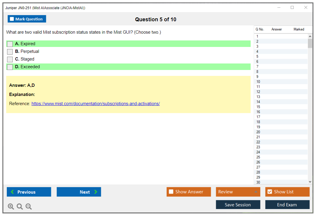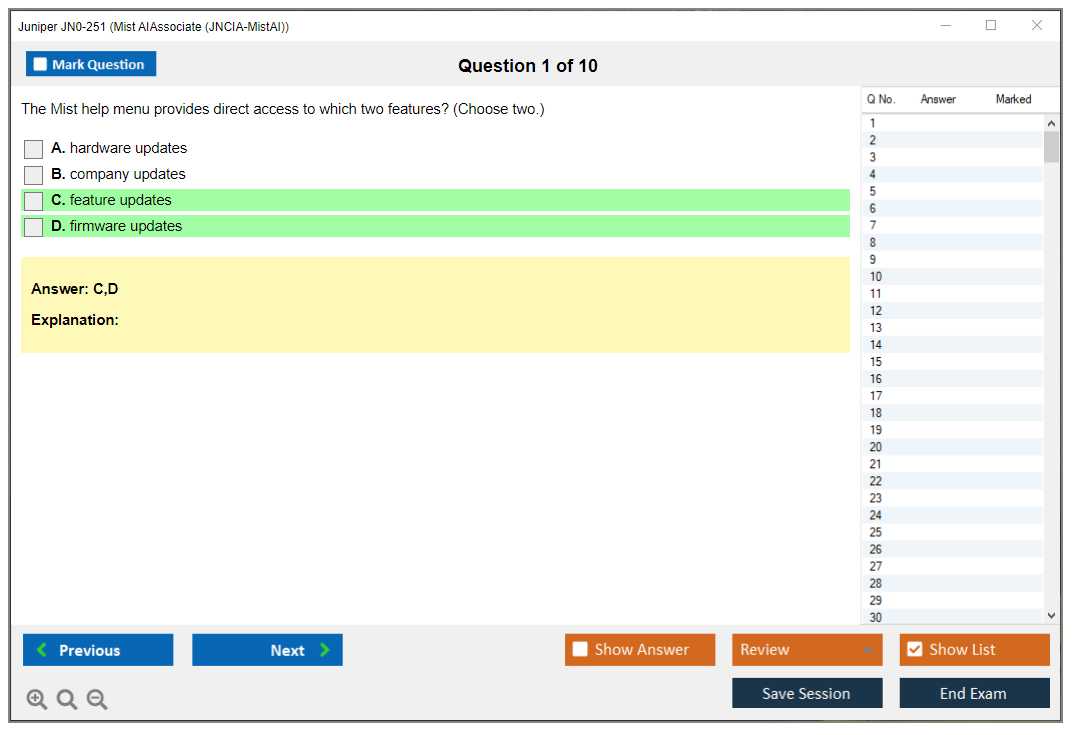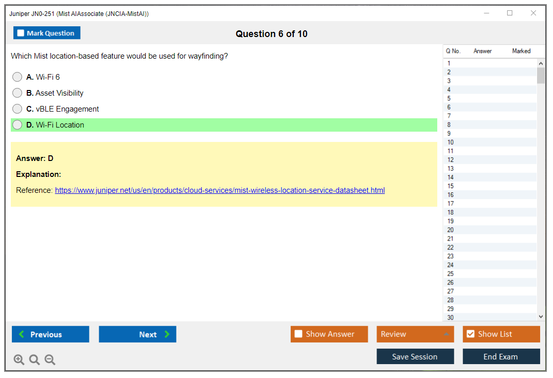 Note: Juniper JN0-251 (Mist AI - Associate (JNCIA-MistAI)) will not receive any new updates.