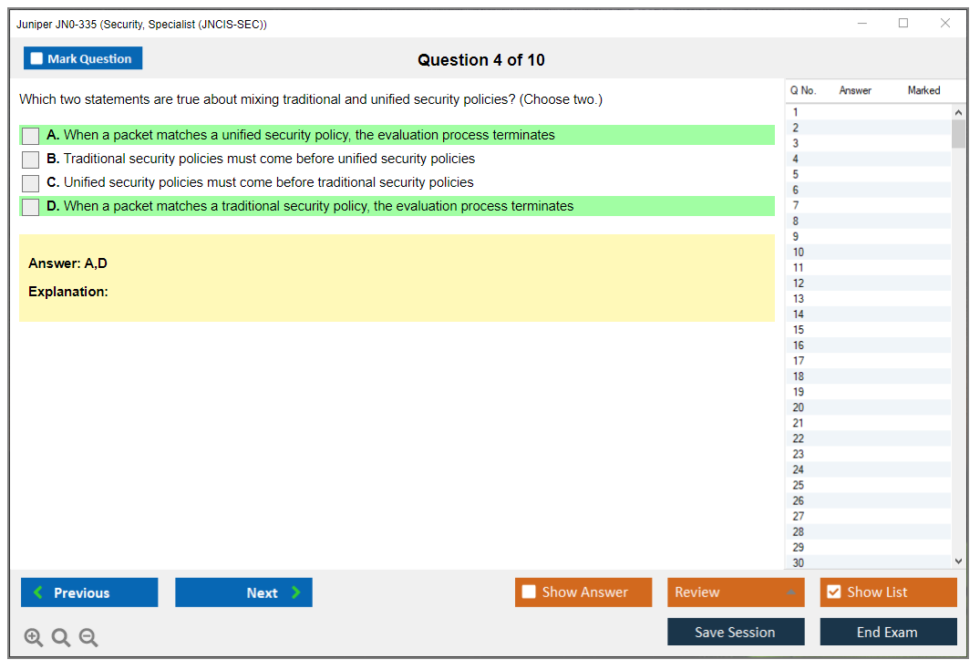 The Juniper JN0-335 exam is a certification test that assesses an individual's understanding and proficiency in advanced security technologies using Juniper Networks' products and solutions. It is aimed at professionals who work with Juniper Networks security solutions and want to demonstrate their expertise.