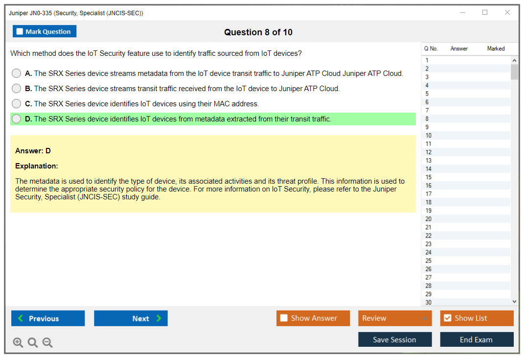 The Juniper JN0-335 (Security, Specialist (JNCIS-SEC)) exam is designed to validate the knowledge and skills of IT professionals in the field of Juniper Networks security technologies. It is part of the Juniper Networks Certification Program (JNCP) and focuses on advanced security technologies and related platform configuration and troubleshooting skills.