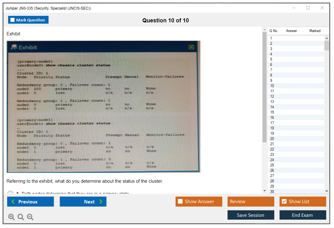 Sample questions for the Juniper JN0-335 exam can be found on the official Juniper Networks Certification Program website or through various study guides and practice exams available online.
