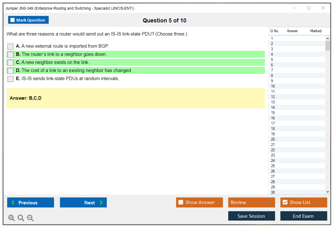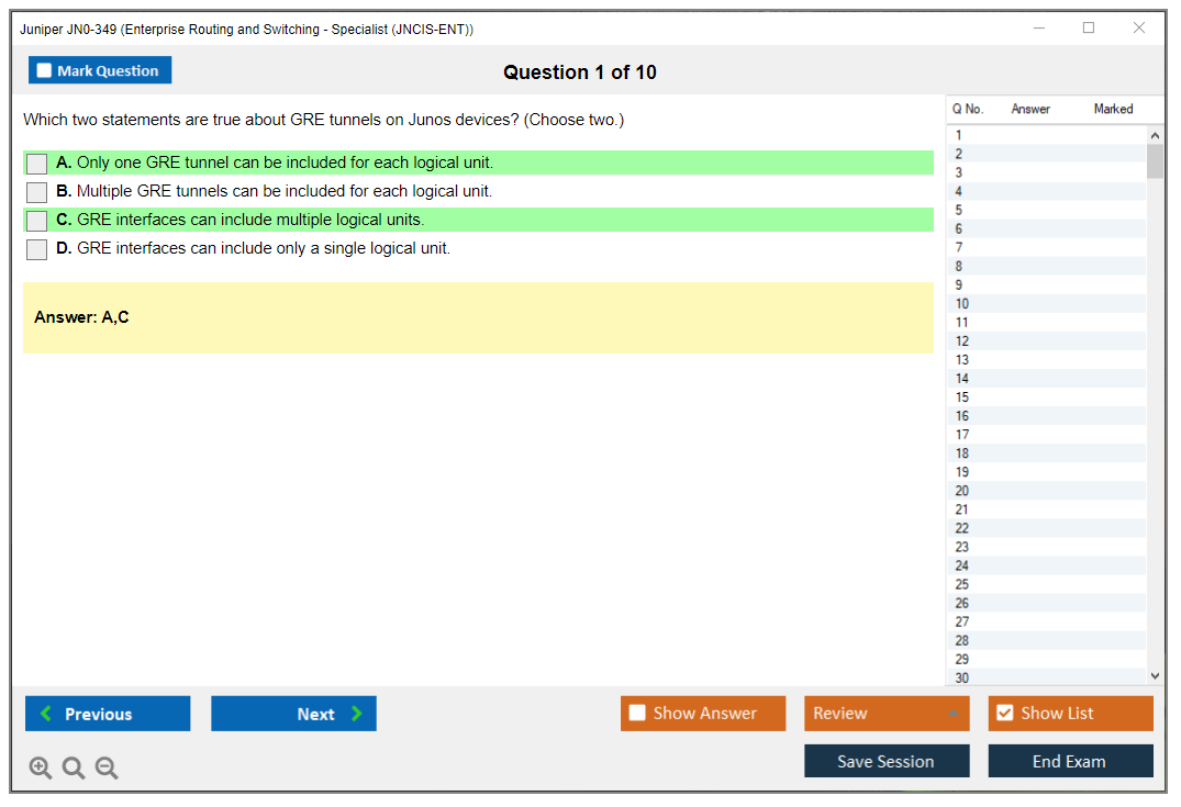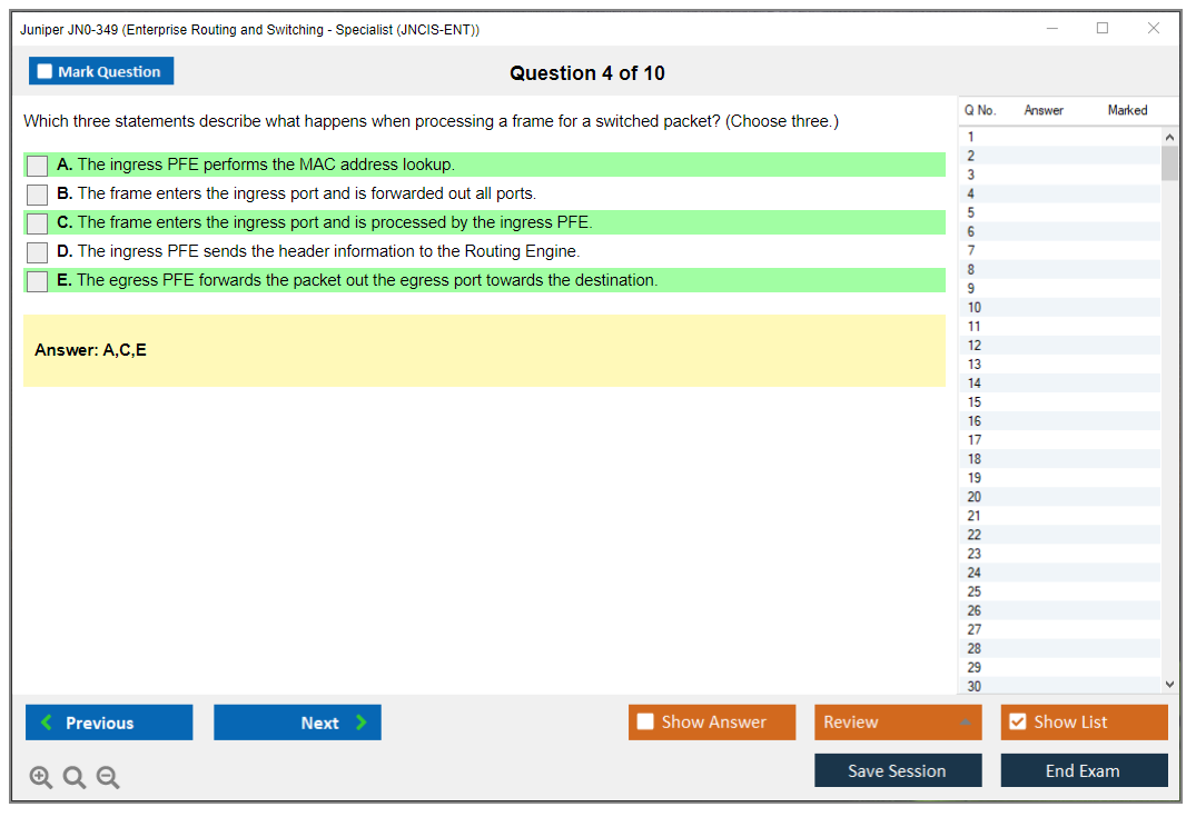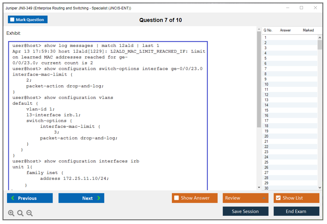 The Juniper JN0-349 (Enterprise Routing and Switching - Specialist (JNCIS-ENT)) exam is designed for networking professionals with intermediate knowledge of routing and switching implementations in Junos. The exam verifies a candidate's understanding of advanced routing technologies and related platform configuration and troubleshooting skills.