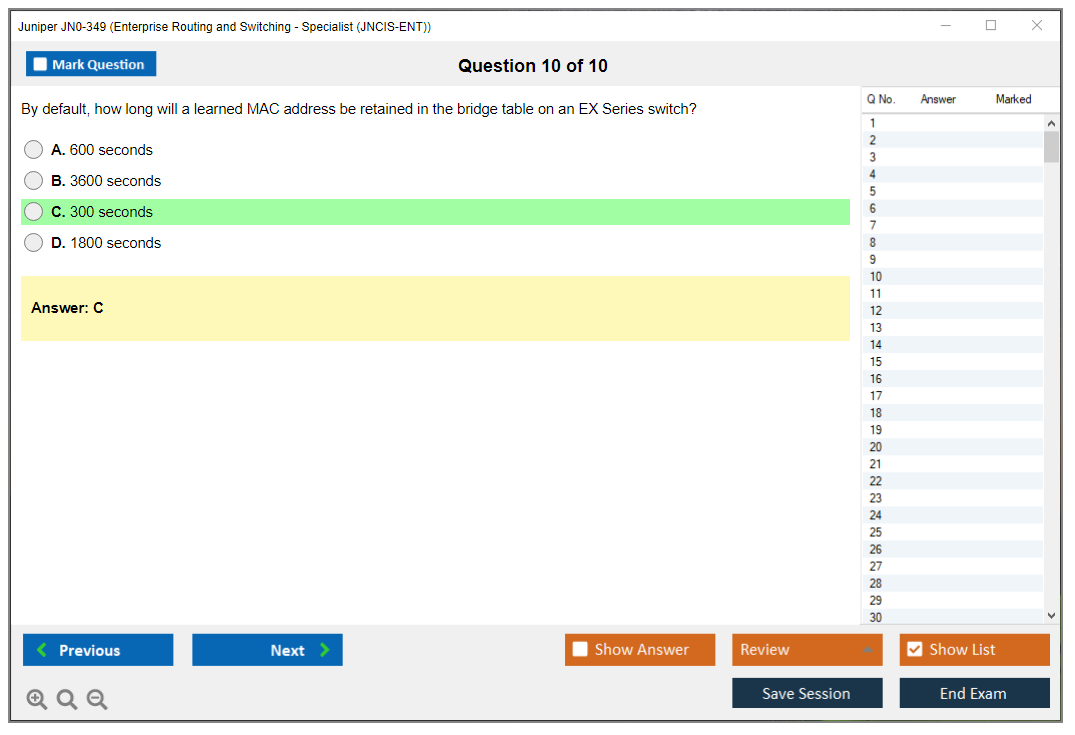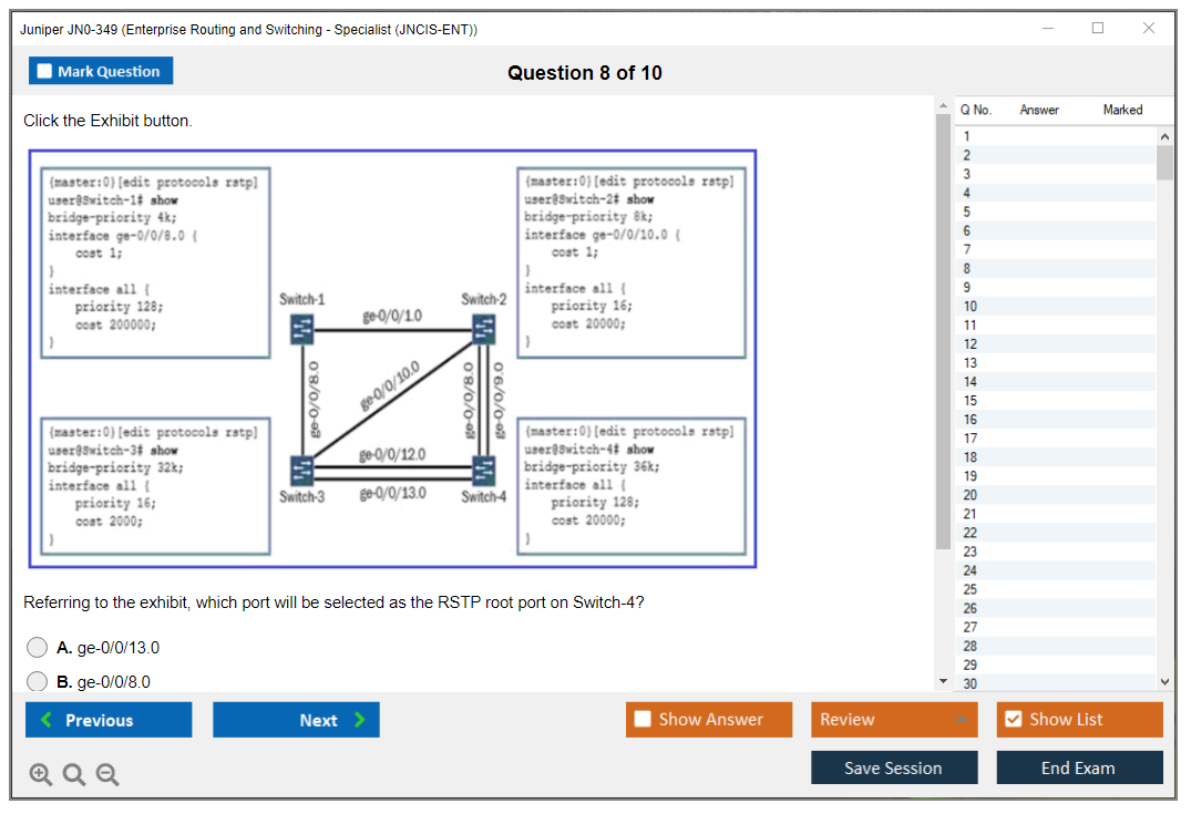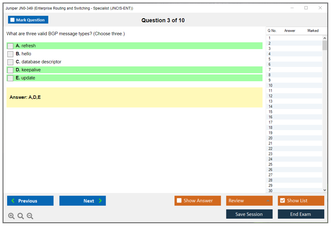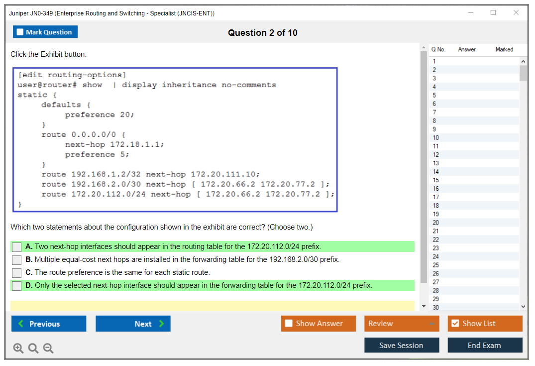 The Juniper JN0-349 (Enterprise Routing and Switching - Specialist (JNCIS-ENT)) exam is designed for networking professionals with intermediate knowledge of routing and switching implementations in Junos. The exam verifies a candidate's understanding of advanced routing technologies and related platform configuration and troubleshooting skills.