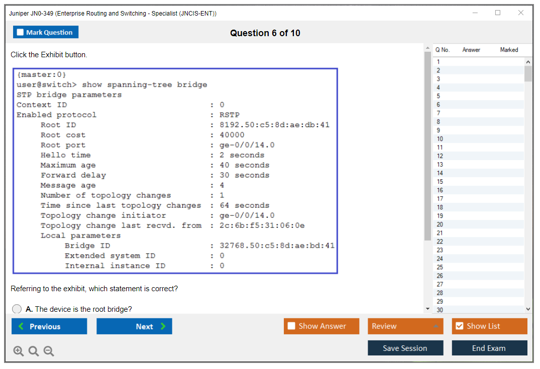 The Juniper JN0-349 exam focuses on validating the skills and knowledge required for configuring and troubleshooting Junos-based enterprise routing and switching platforms. It is part of the Juniper Networks Certification Program (JNCP) and is aimed at professionals seeking to demonstrate their expertise in enterprise networking.