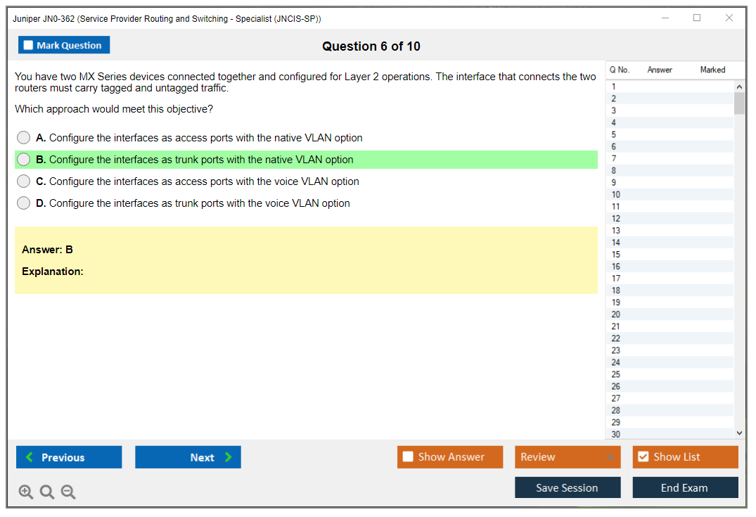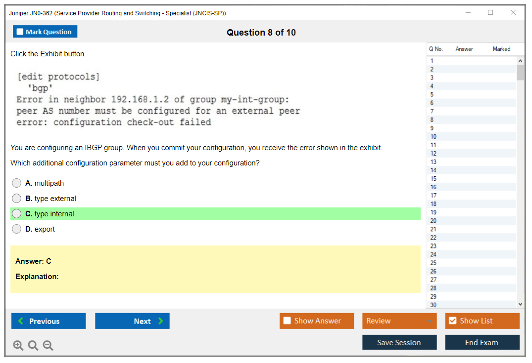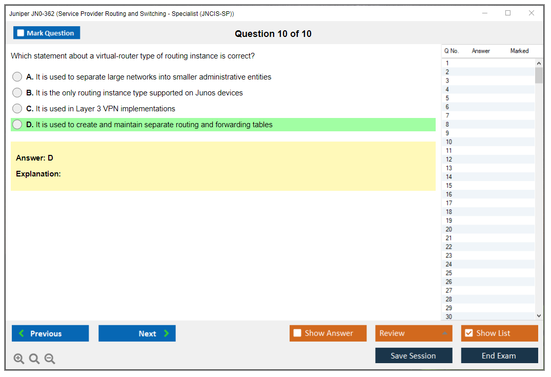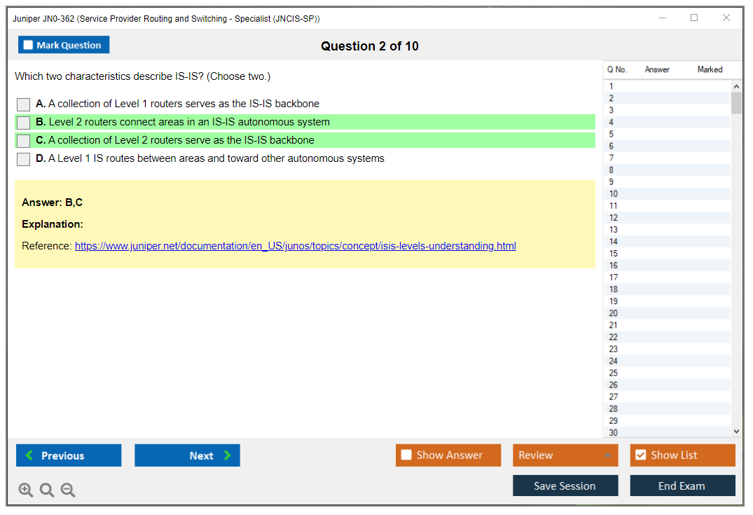The Juniper JN0-362 exam, also known as the Service Provider Routing and Switching - Specialist (JNCIS-SP), is designed for networking professionals with intermediate knowledge of routing and switching implementations in Juniper Networks service provider environments.