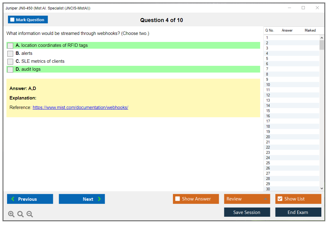 JN0-450 (Mist AI. Specialist (JNCIS-MistAI)) PDF + Test Engine