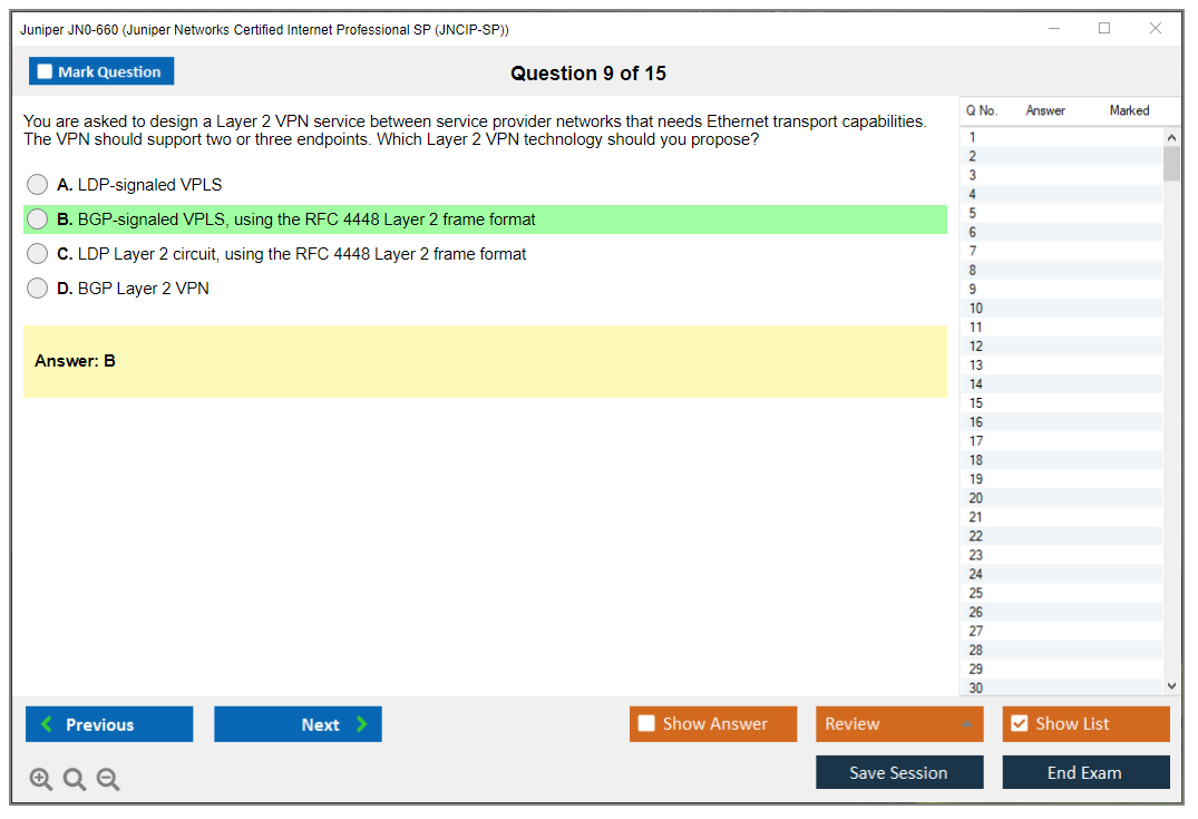 The JN0-660 exam is intended for experienced networking professionals with advanced knowledge of Juniper Networks technologies and the ability to apply that knowledge in a service provider environment.